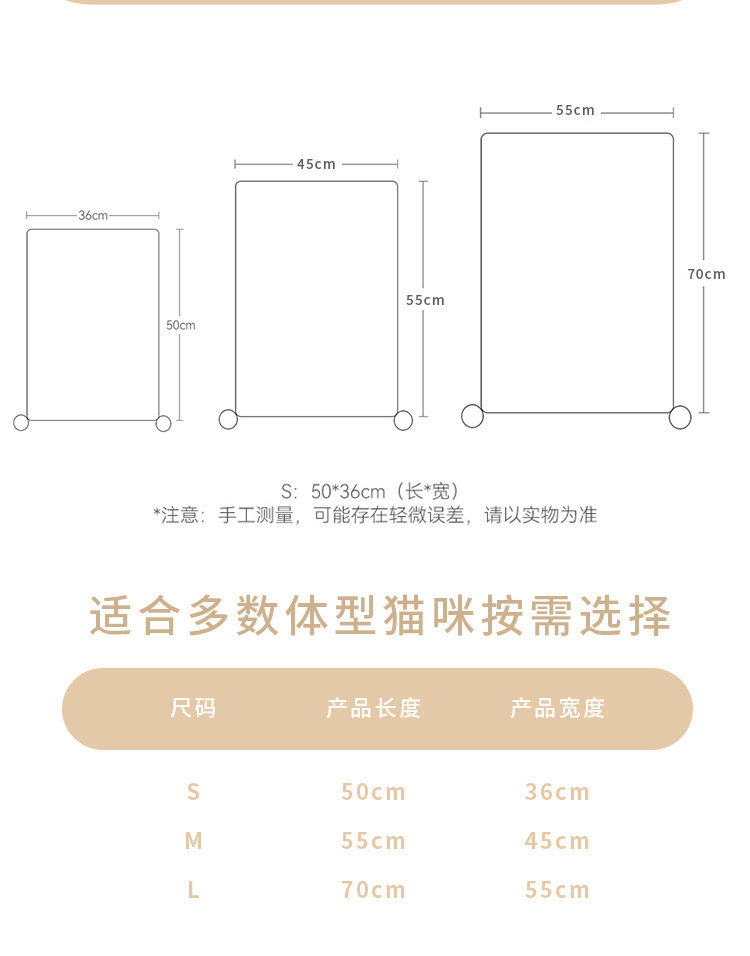 产品尺寸:S码50*36cm M码:55*45cm L码:70*55cm