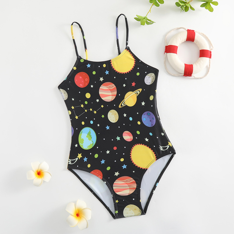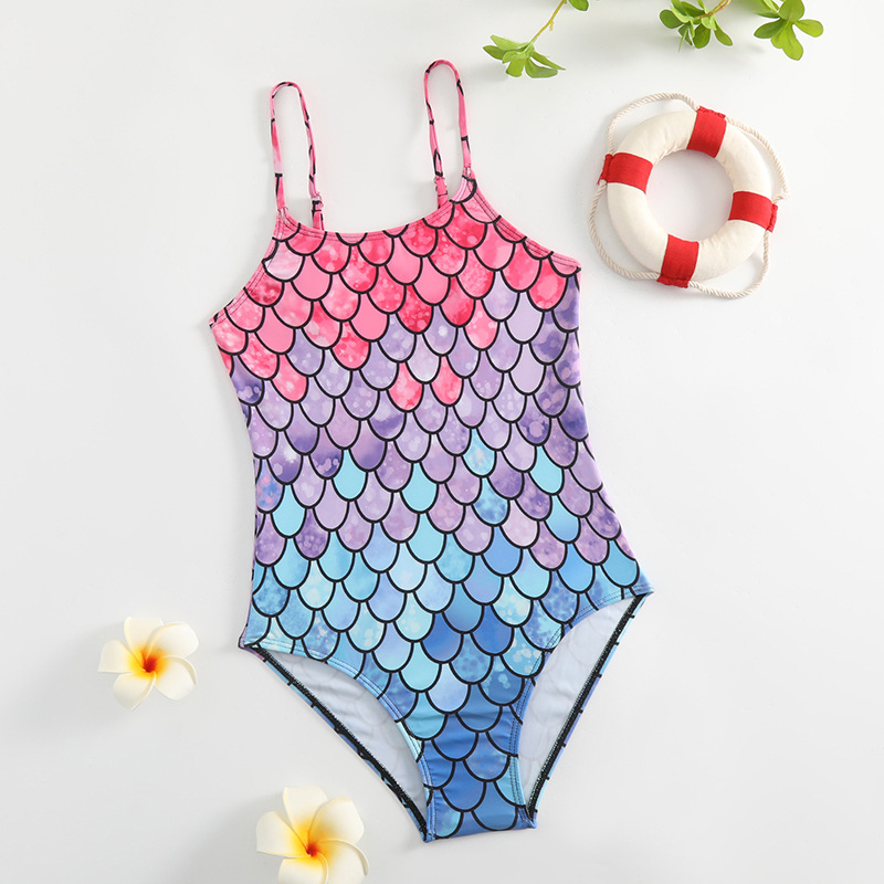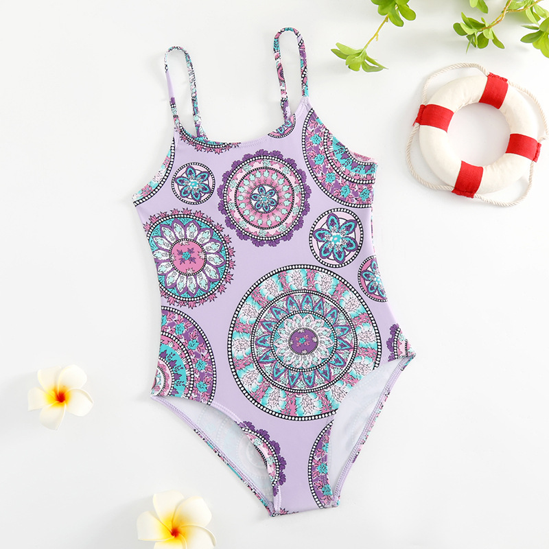 2025 아마존 멀티컬러 프린트 원피스 아동 비키니 수영복 유아 공주 스포츠 스타일 여아용