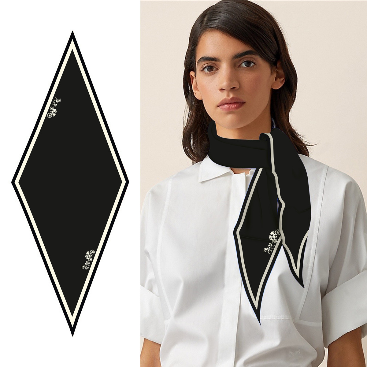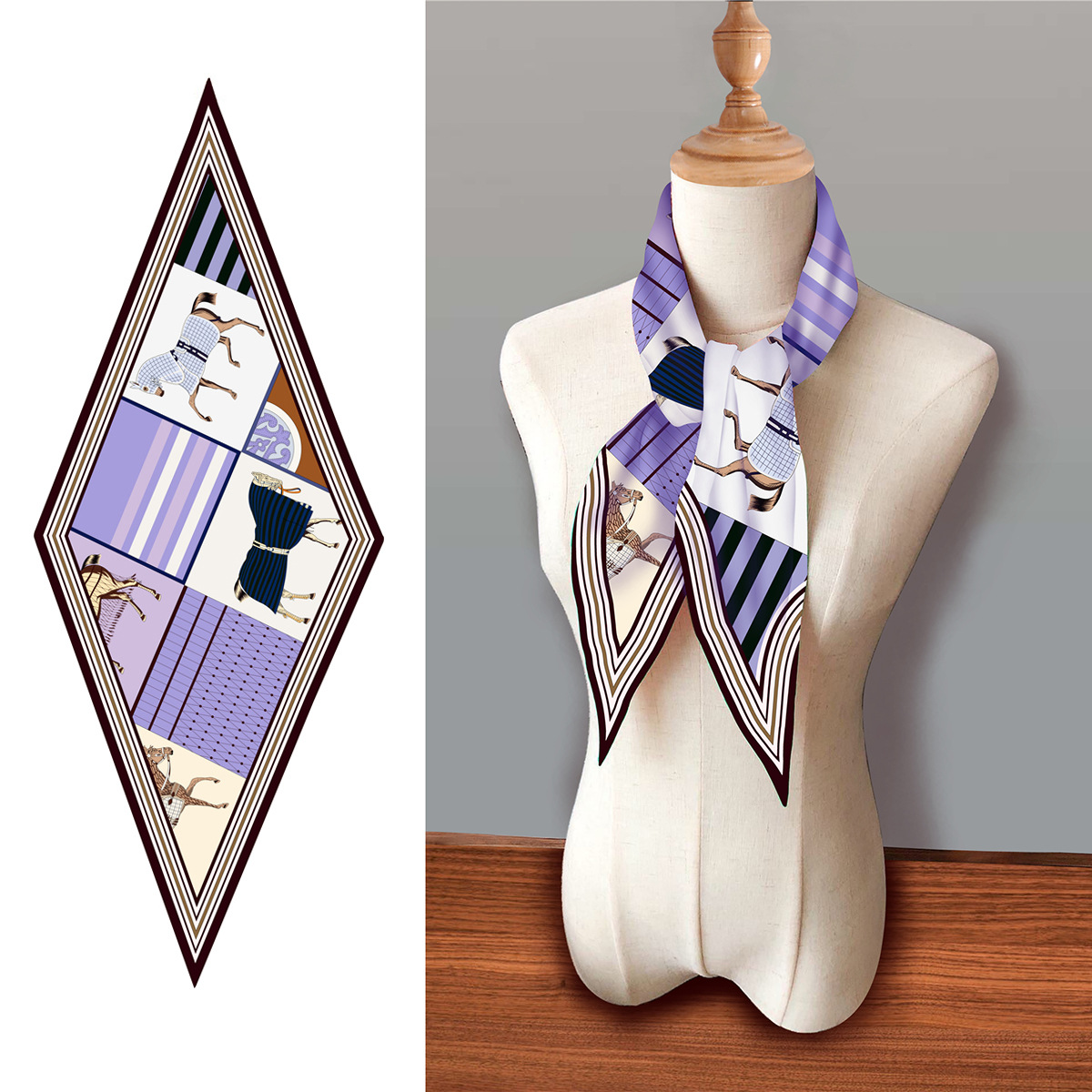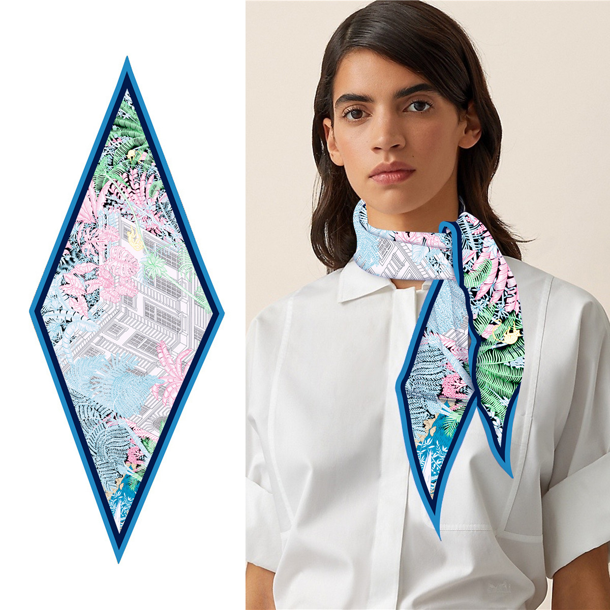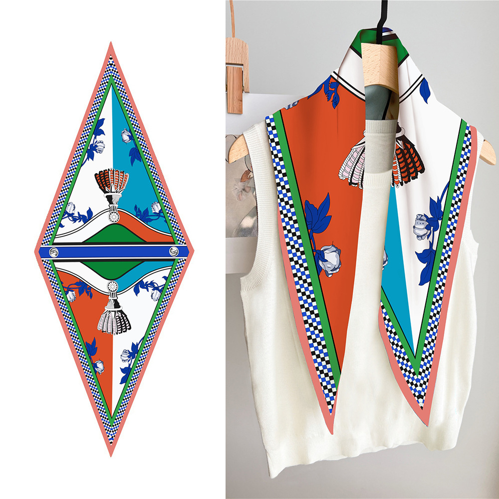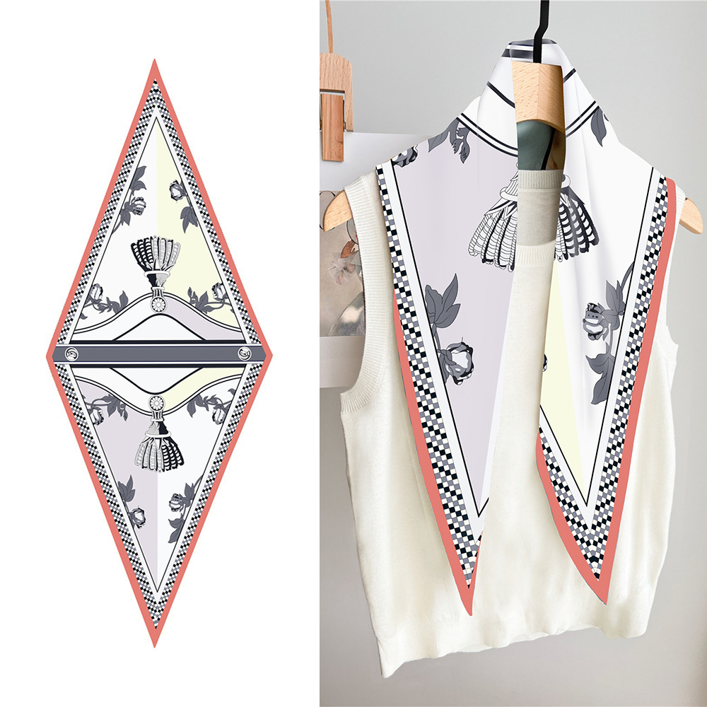 고급 감각 새로운 모든 매치 트윌 실크 표준 다이아몬드 스카프 여성용 봄과 가을 스카프 숄 삼각형 스카프스토어 가기