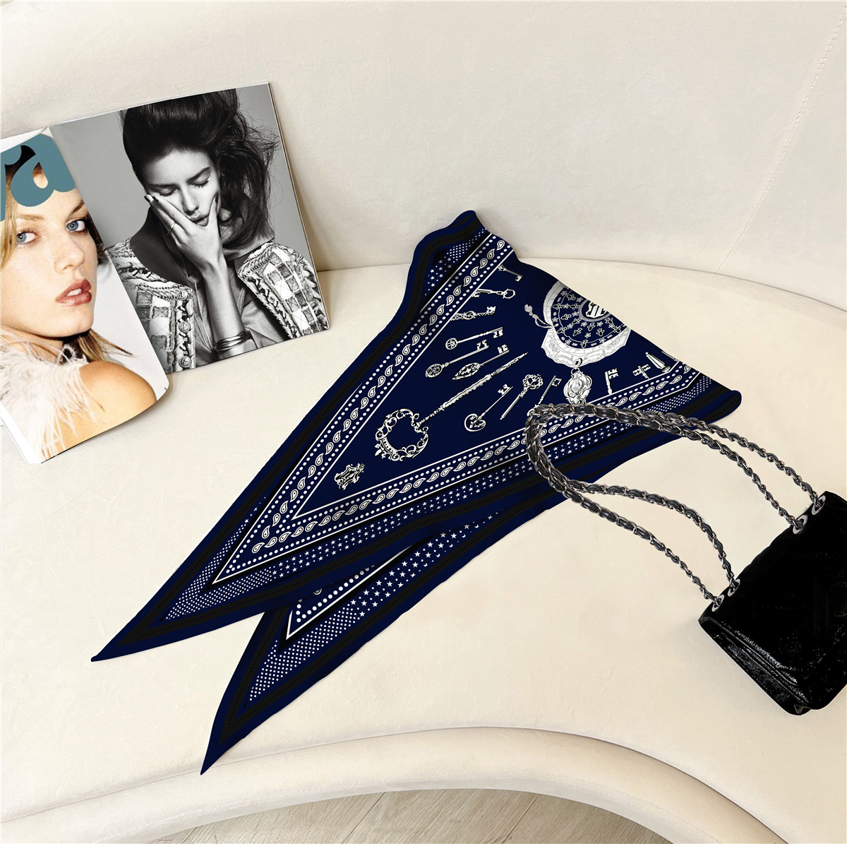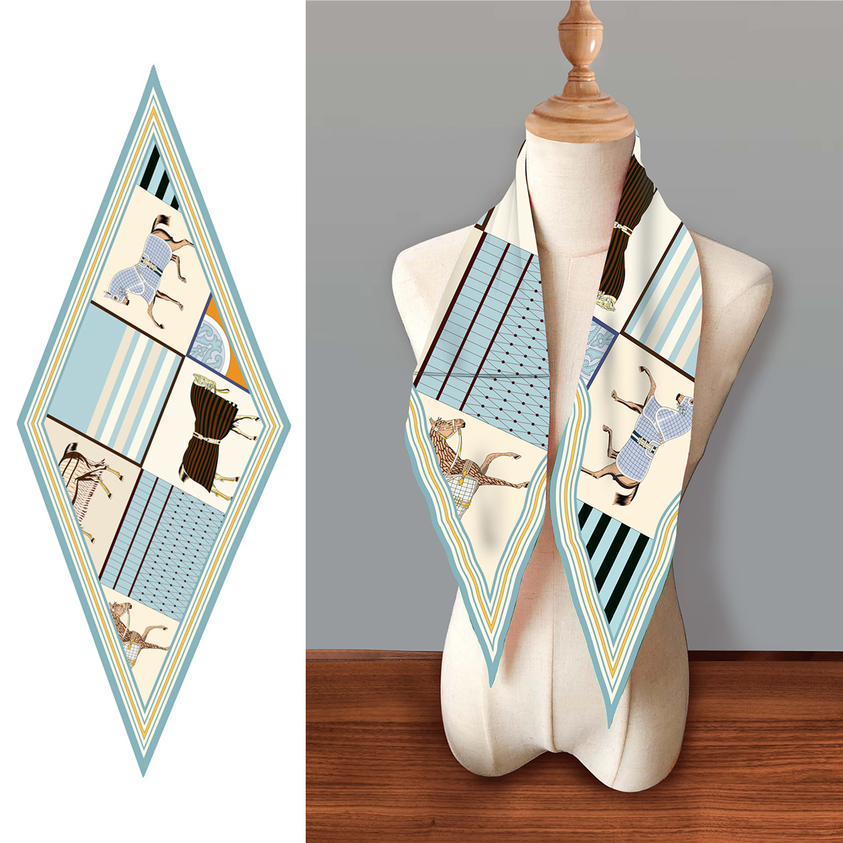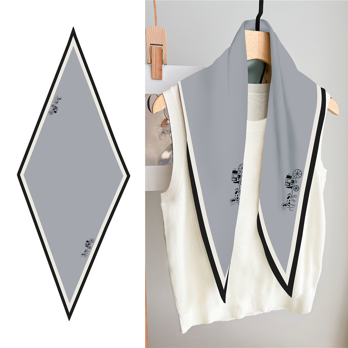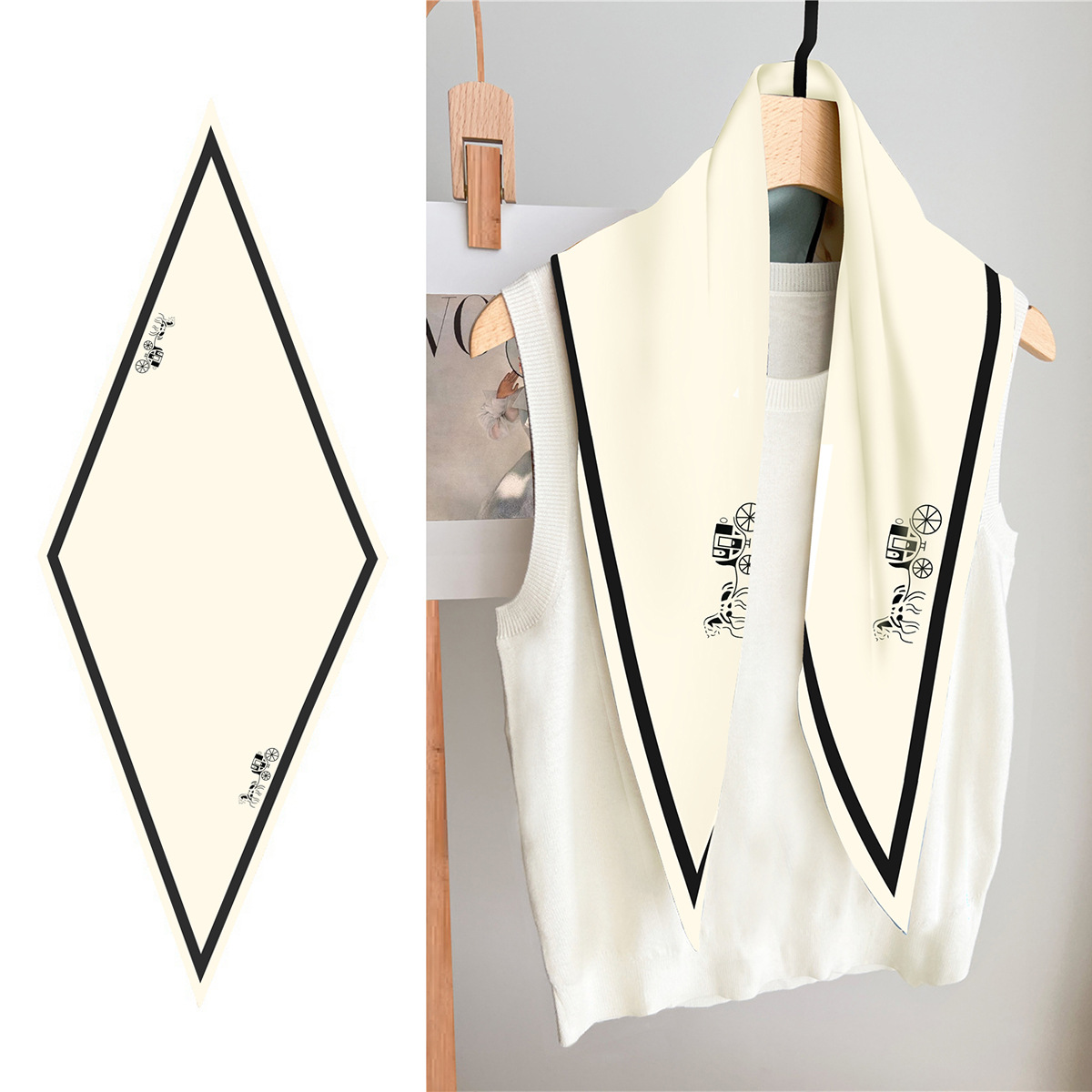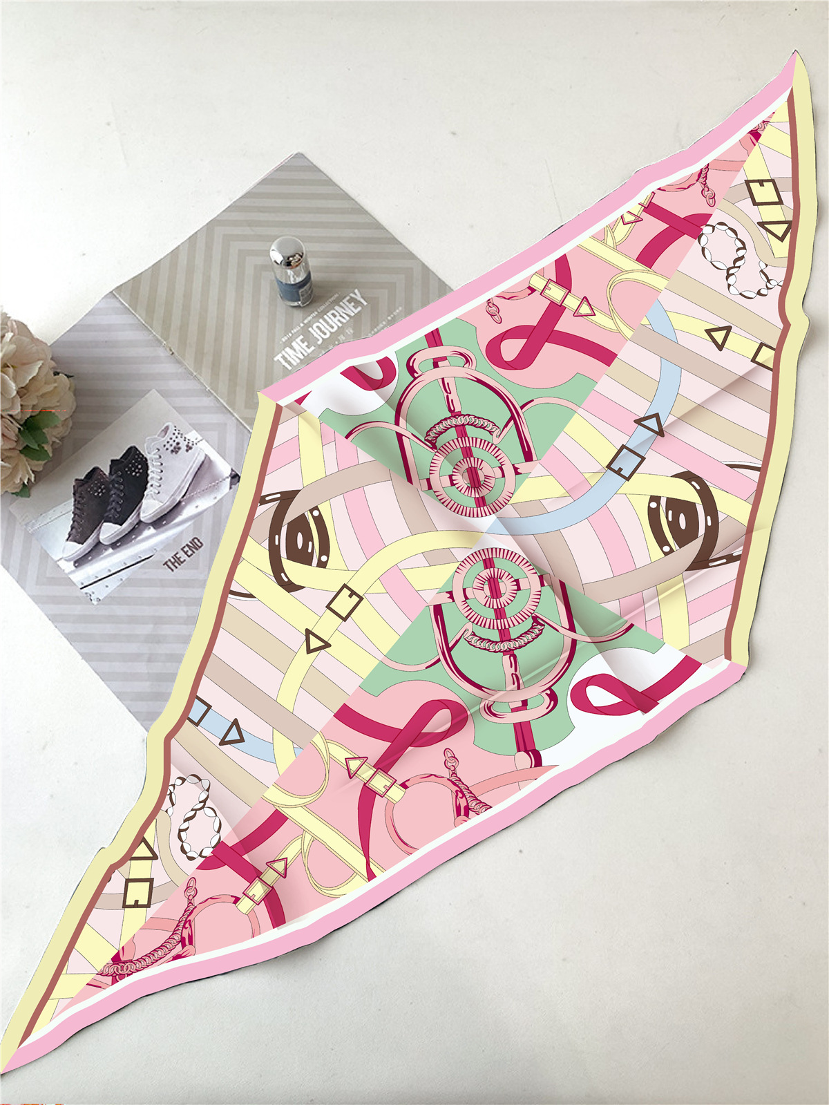 고급 감각 새로운 모든 매치 트윌 실크 표준 다이아몬드 스카프 여성용 봄과 가을 스카프 숄 삼각형 스카프스토어 가기