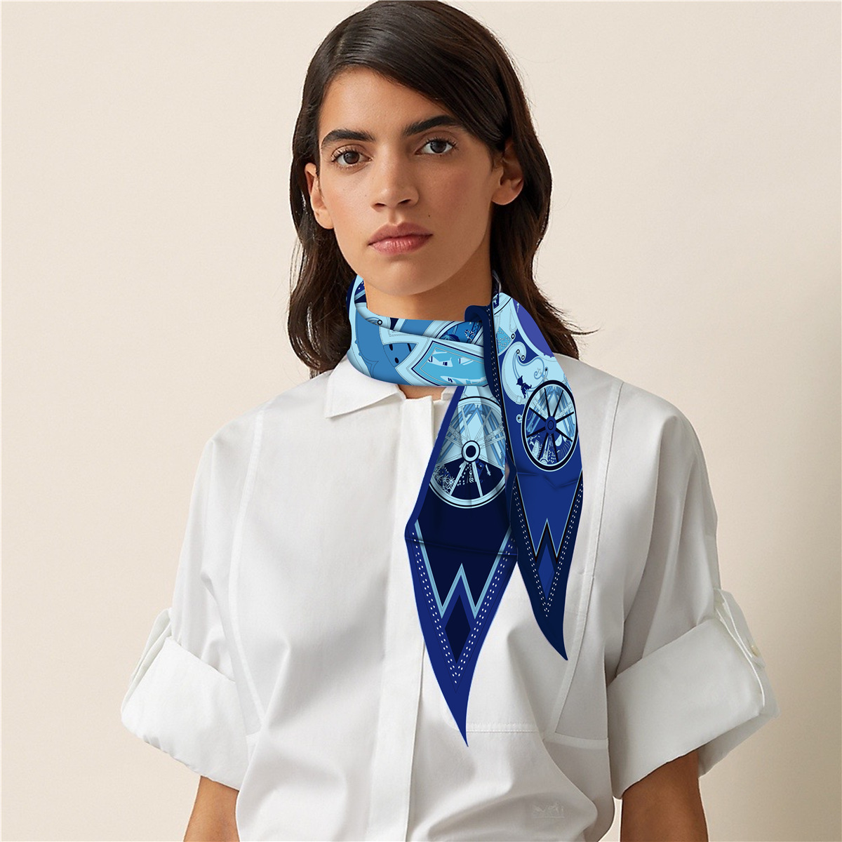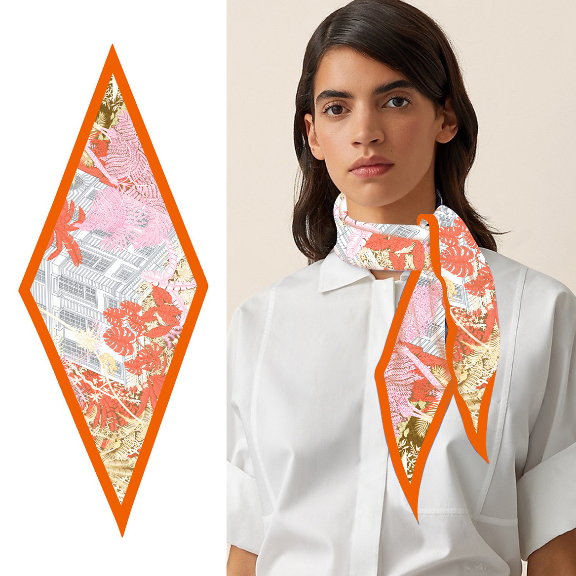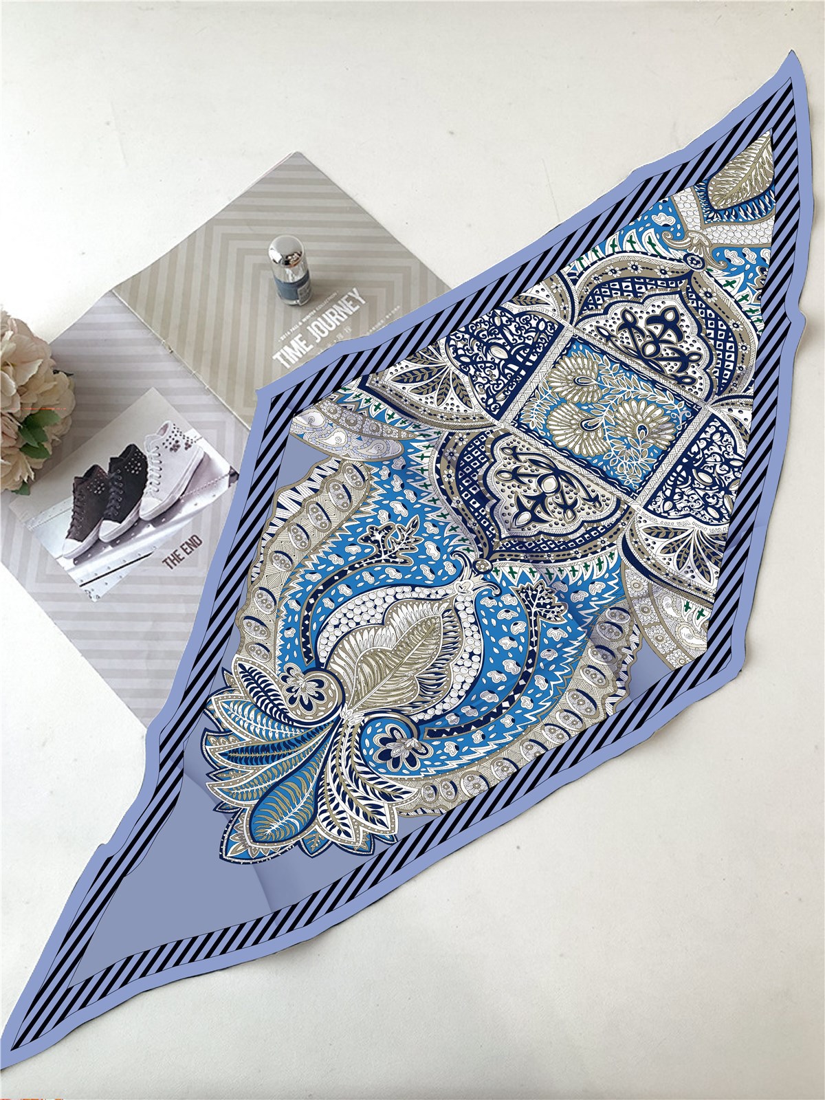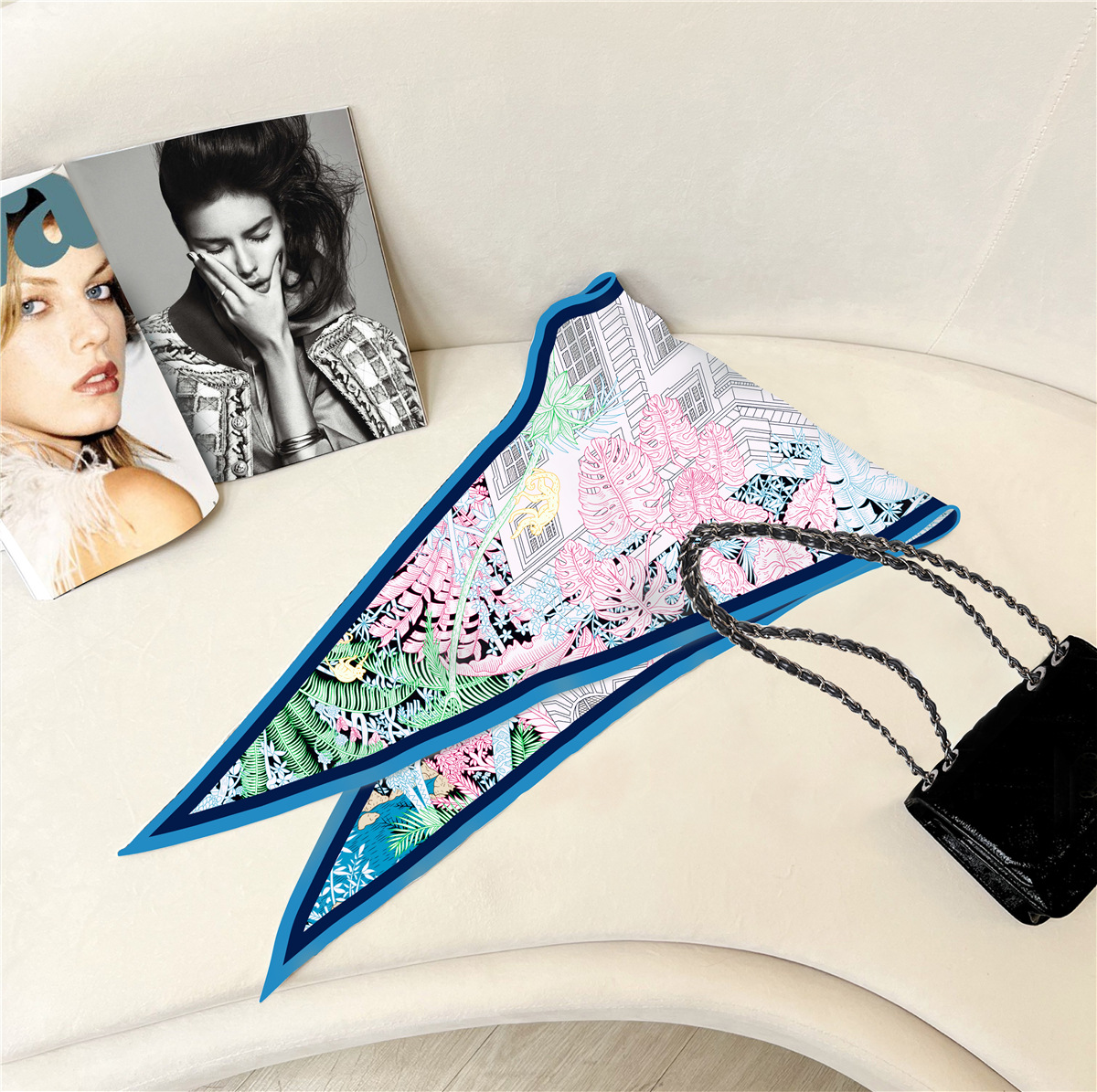 고급 감각 새로운 모든 매치 트윌 실크 표준 다이아몬드 스카프 여성용 봄과 가을 스카프 숄 삼각형 스카프스토어 가기