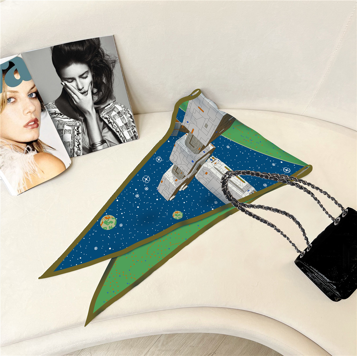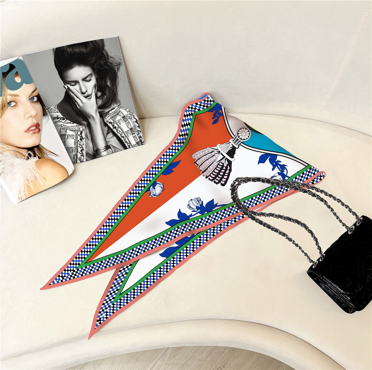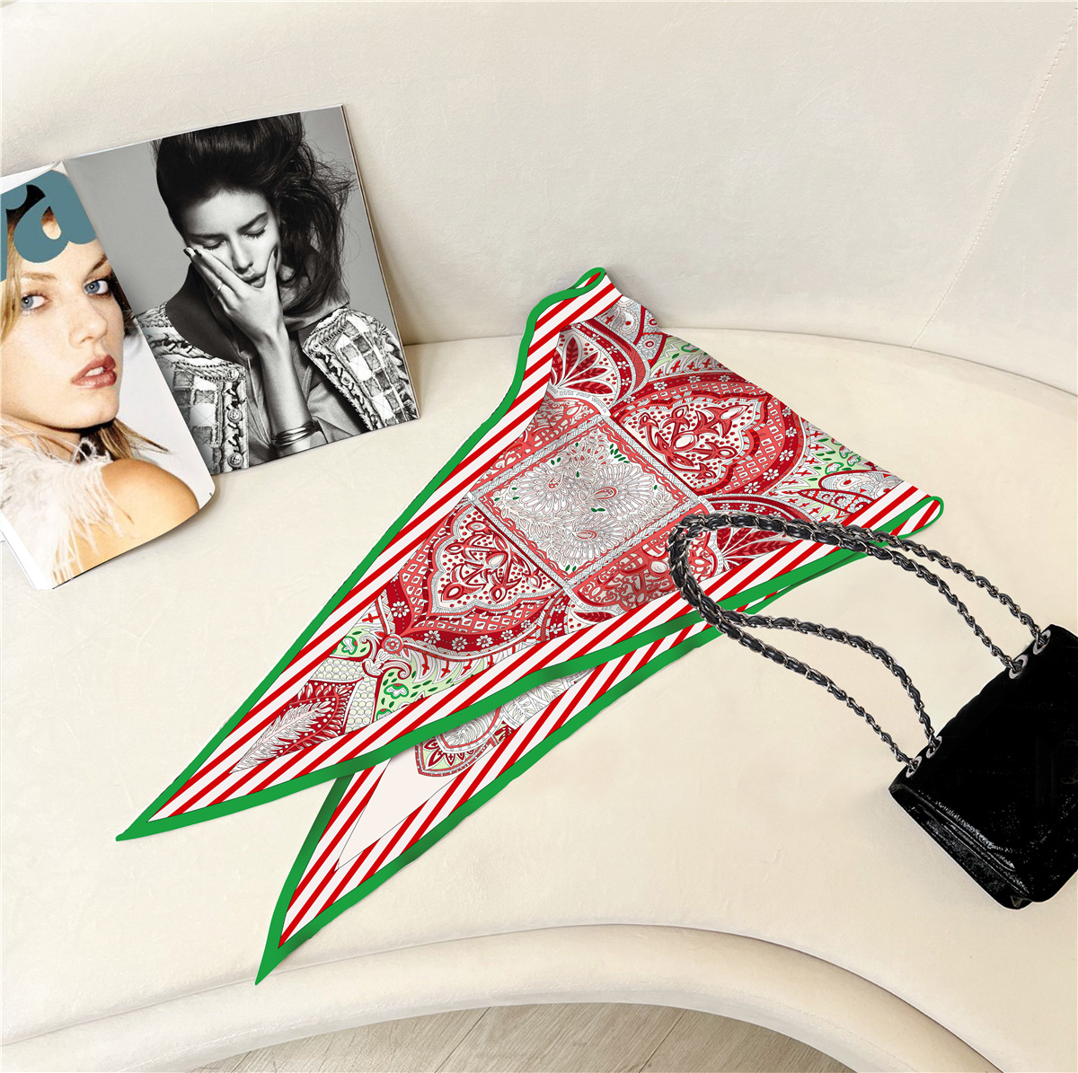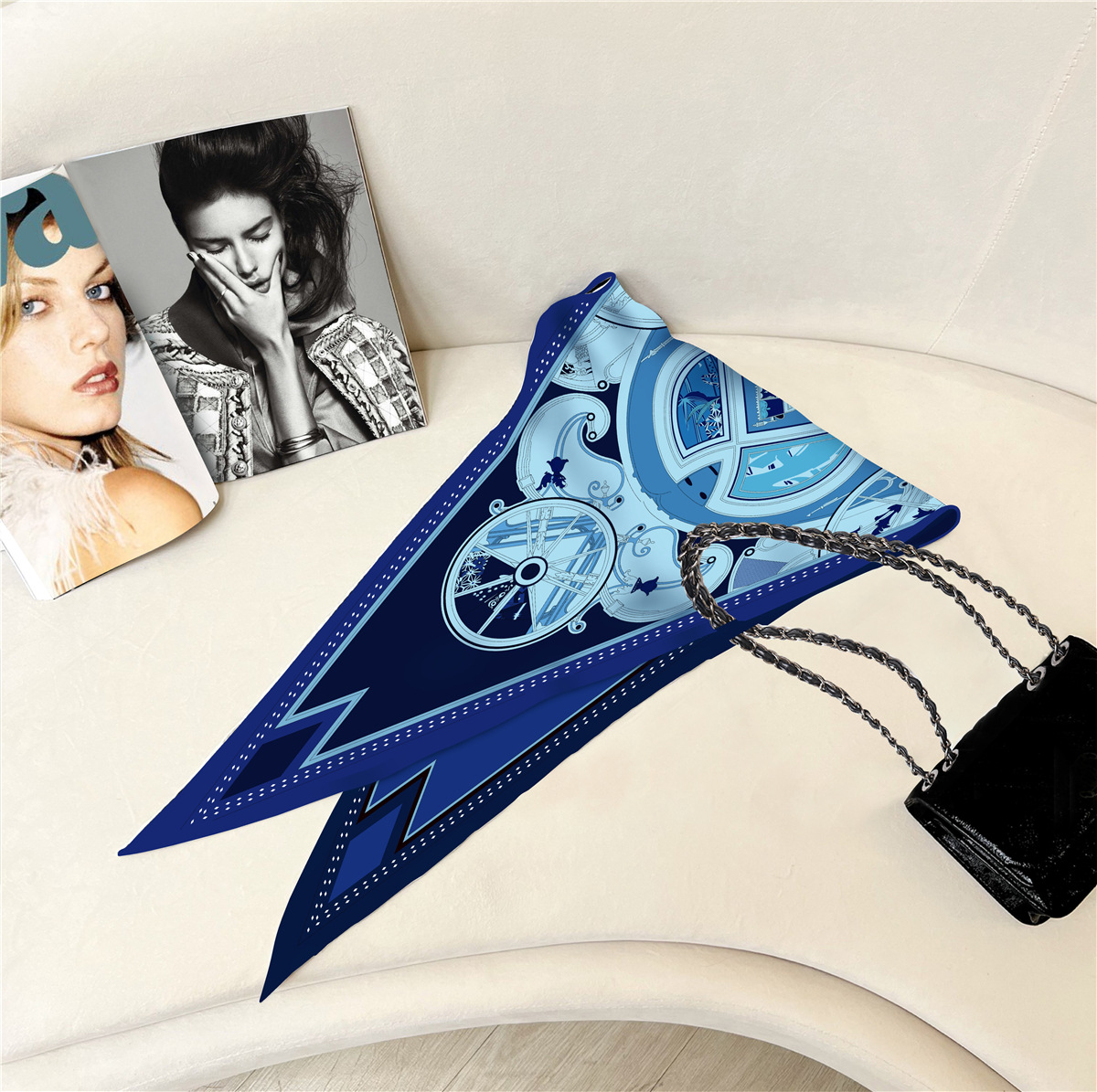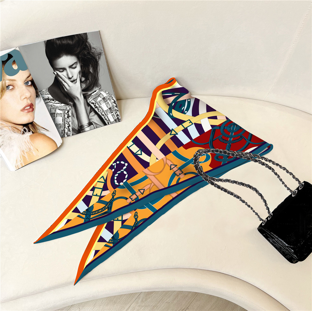 고급 감각 새로운 모든 매치 트윌 실크 표준 다이아몬드 스카프 여성용 봄과 가을 스카프 숄 삼각형 스카프스토어 가기