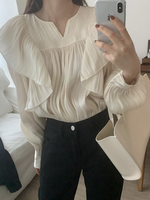 프랑스 스타일 부드러운 휴가 스타일 쉬폰 셔츠 여자의 여름 새로운 첫사랑 달콤한 디자인 요정 러플 탑
