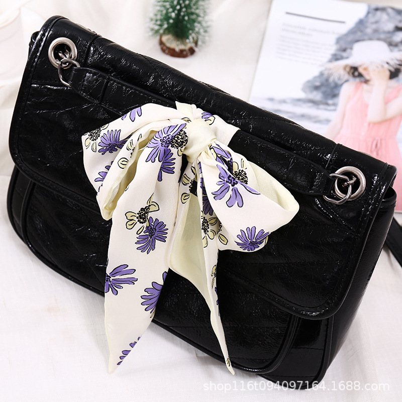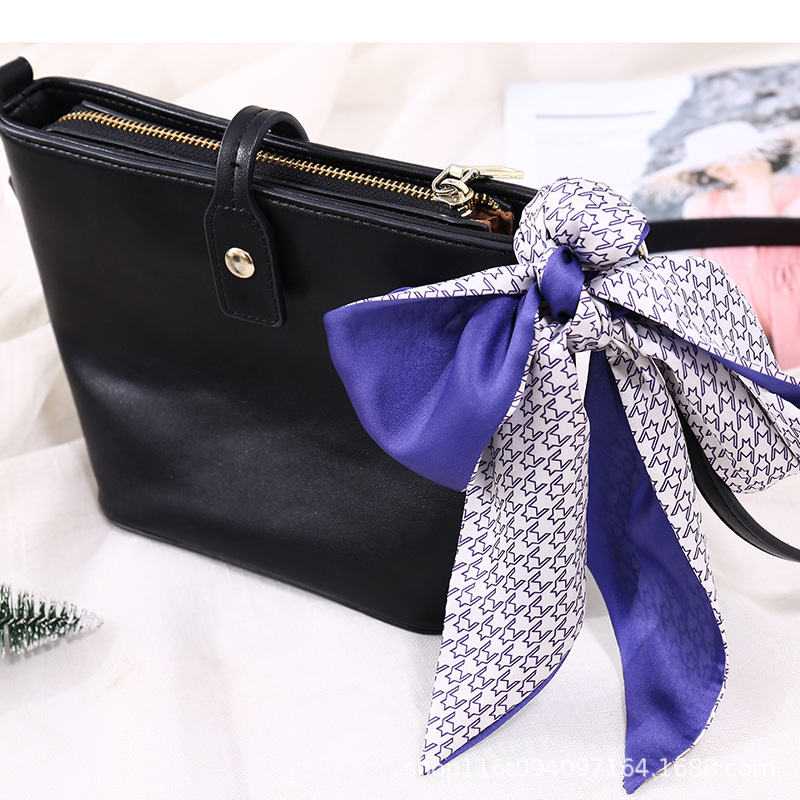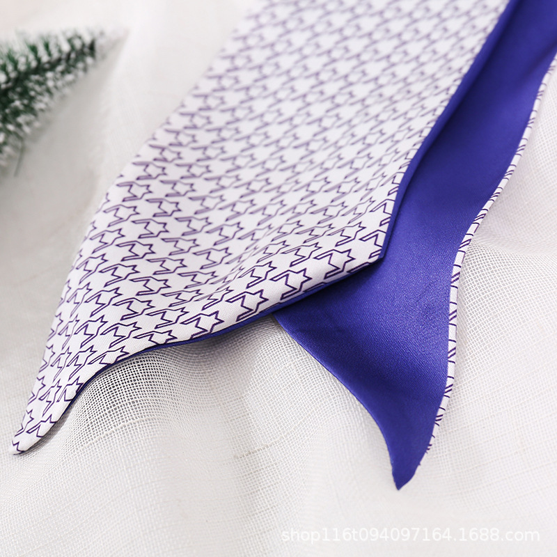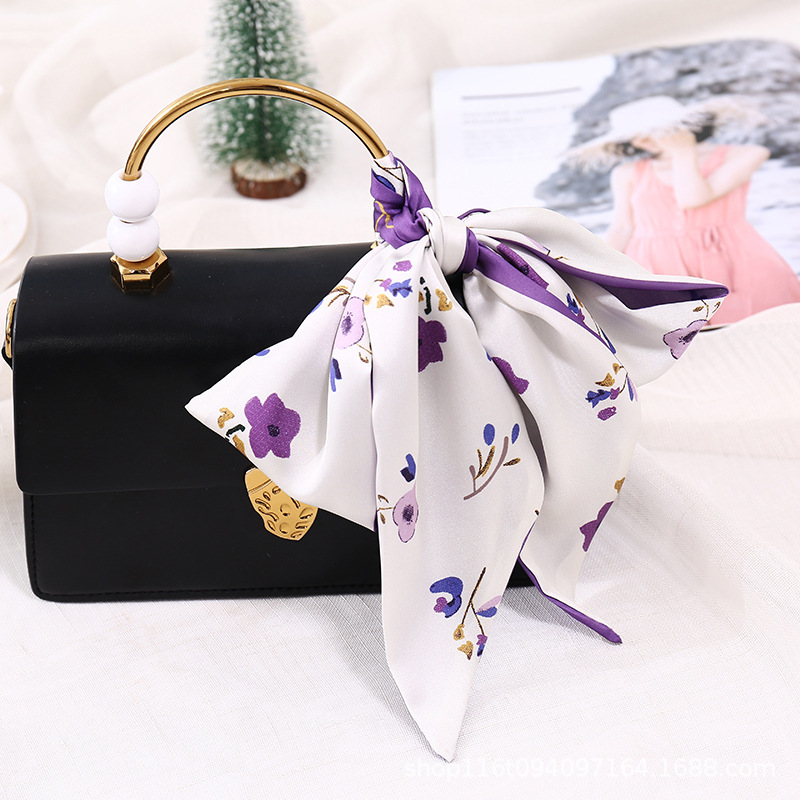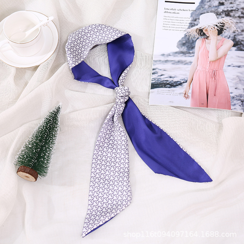 프랑스 로맨틱 작은 실크 스카프 보라색 좁은 리본 넥타이 천 스트랩 헤어 타이 모든 매치 헤어 밴드 긴 인쇄 헤어 액세서리