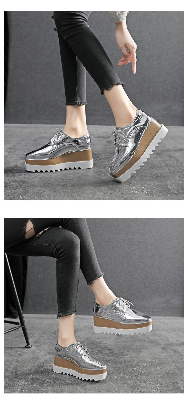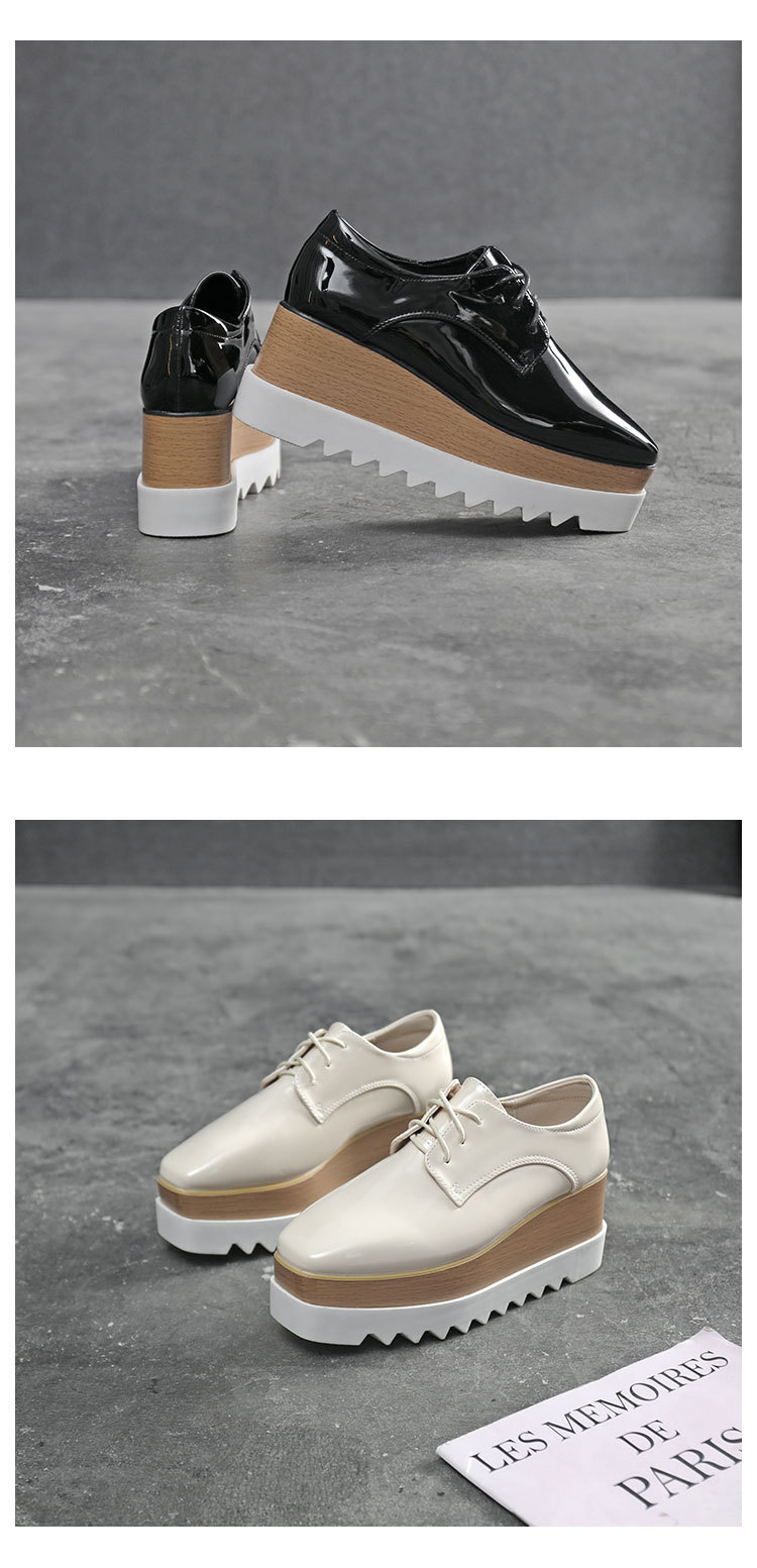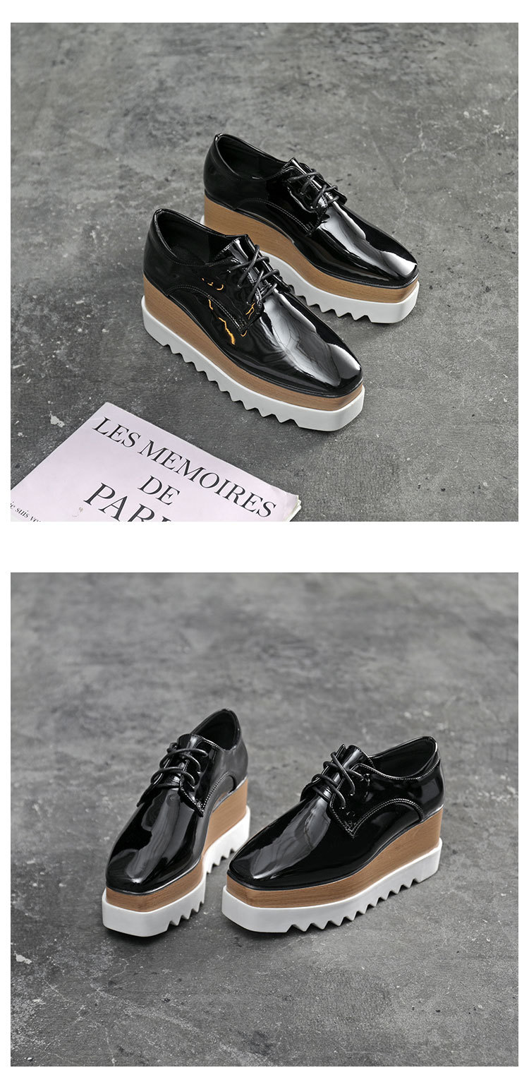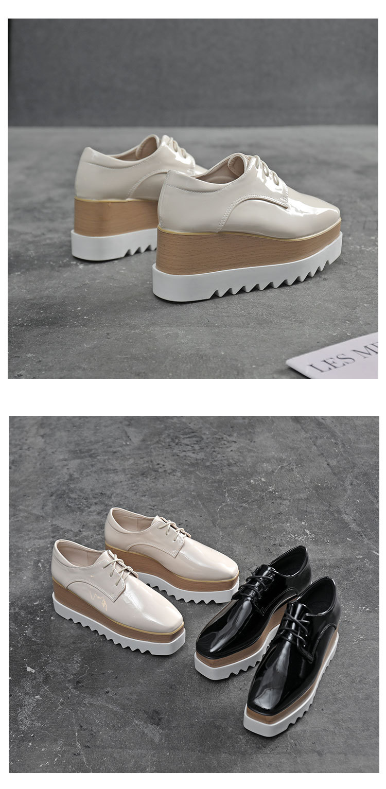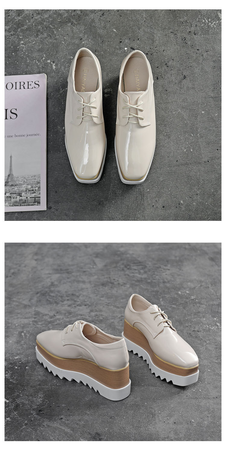 두꺼운 밑창 플랫폼 슈즈 2025 봄 가을 신상품 에나멜 방수 플랫폼 스퀘어토 웨지힐 여성용 영국풍 가죽 신발스토어 가기