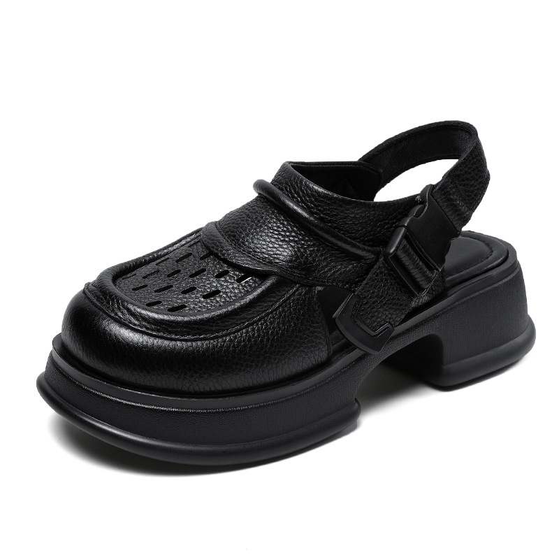탑 레이어 소가죽 두꺼운 바닥 중공 샌들 여성용 2023 여름 새로운 빈티지 미들 힐 수제 가죽 여성 신발스토어 가기