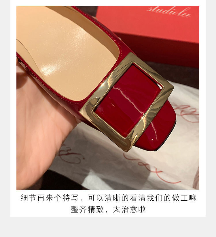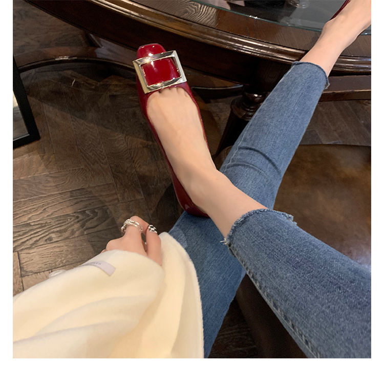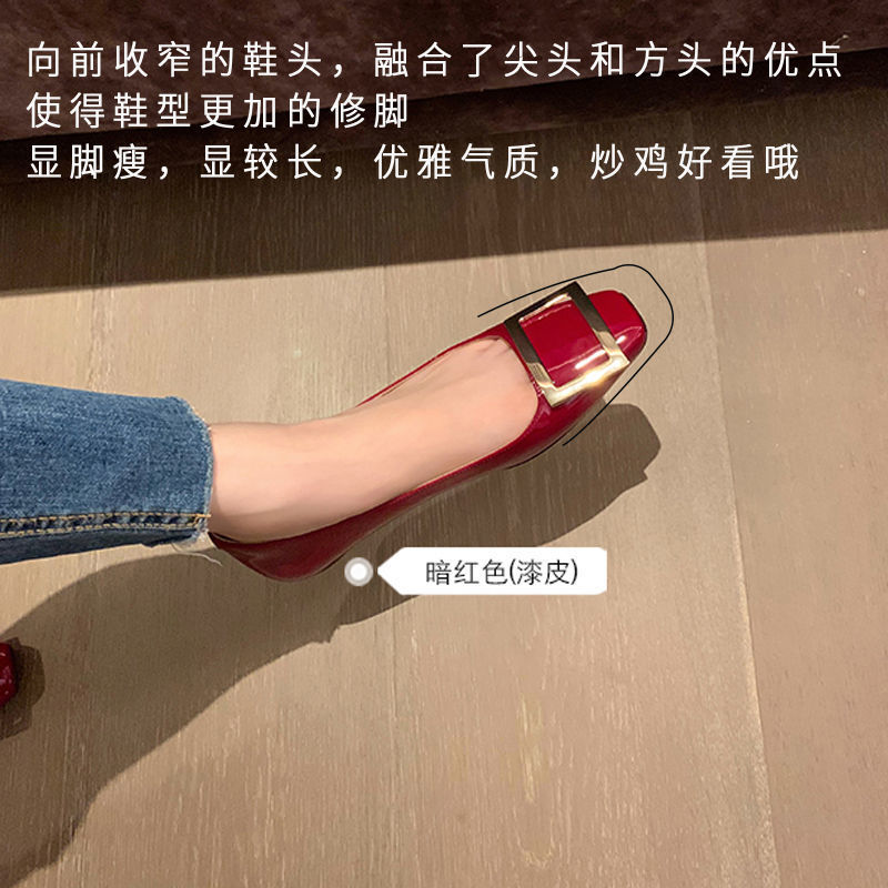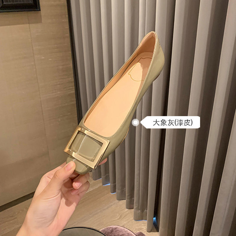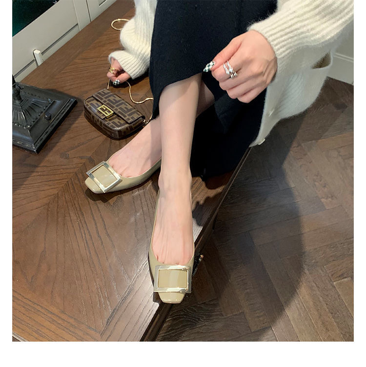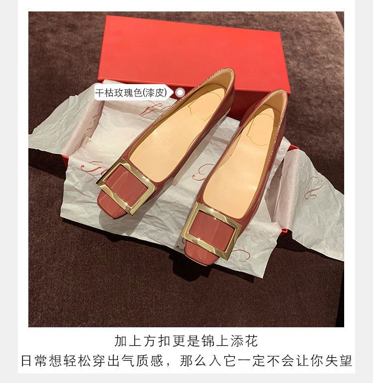 누드 특허 가죽 rv 스퀘어 버클 싱글 슈즈 2025 봄 신작 여성화 다목적 사이즈 34 통근 얕은 입 스퀘어 발가락 플랫 슈즈