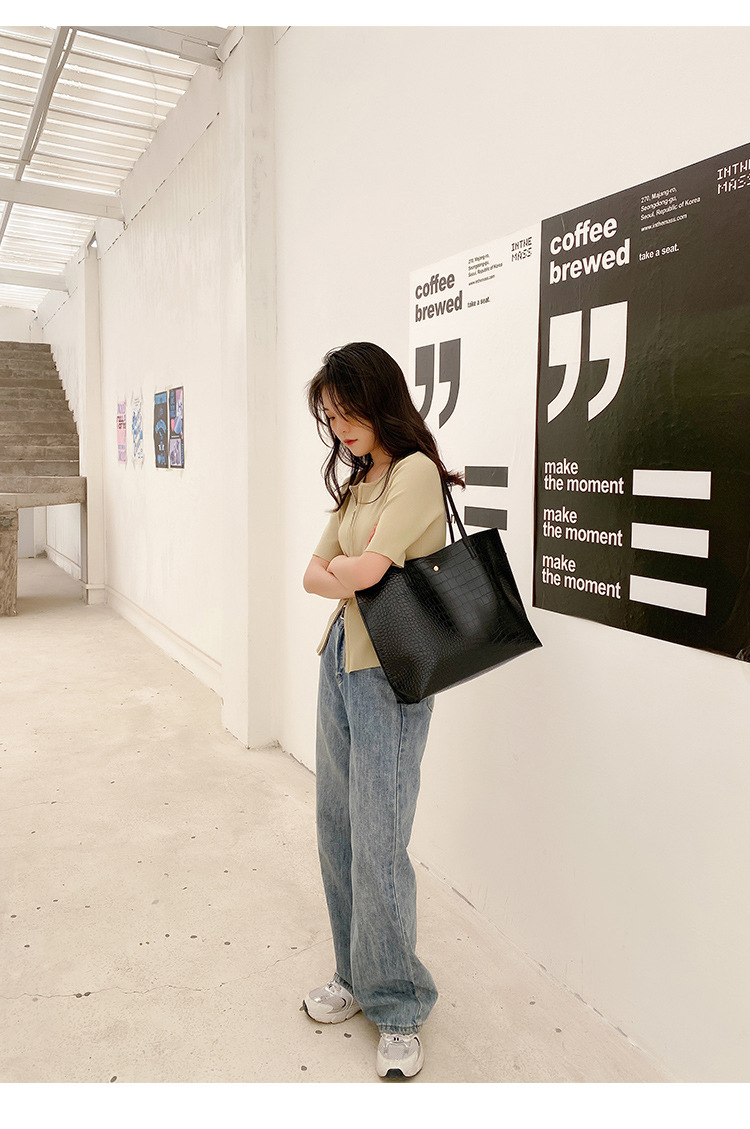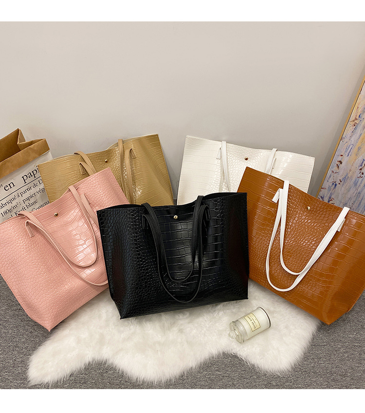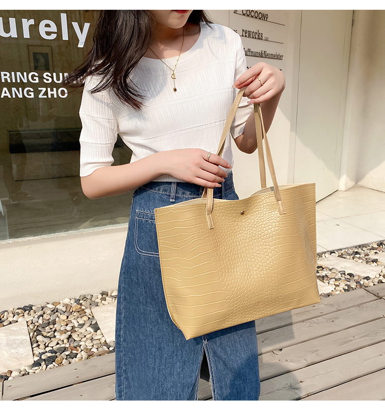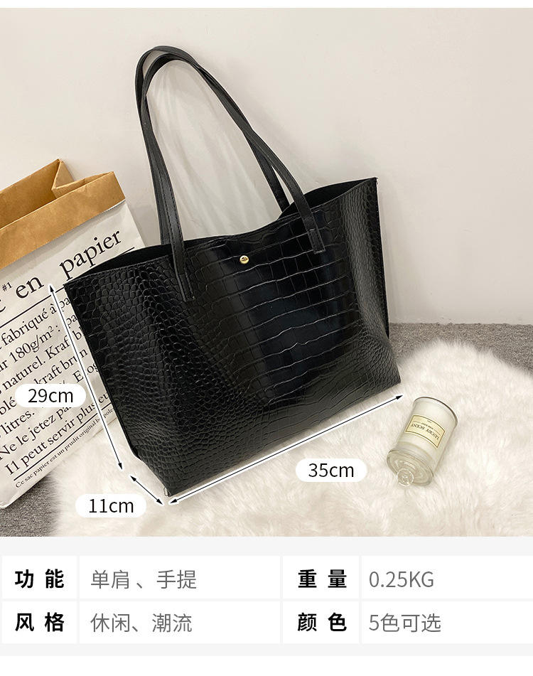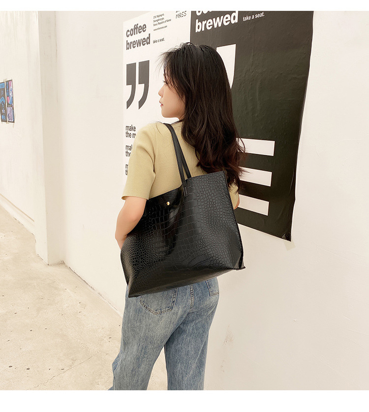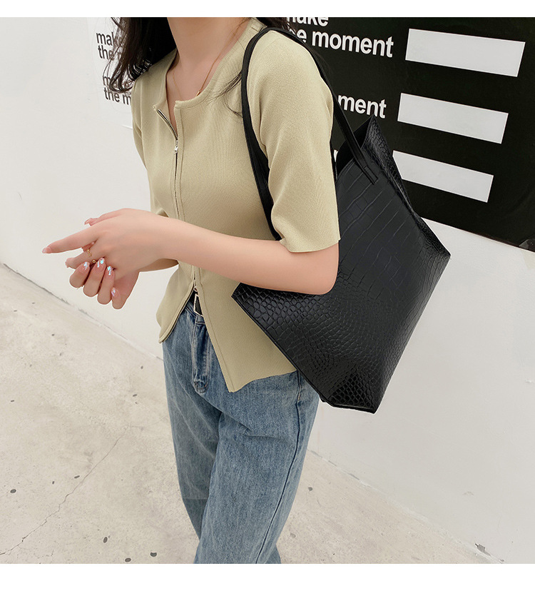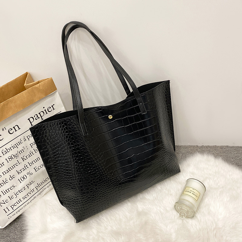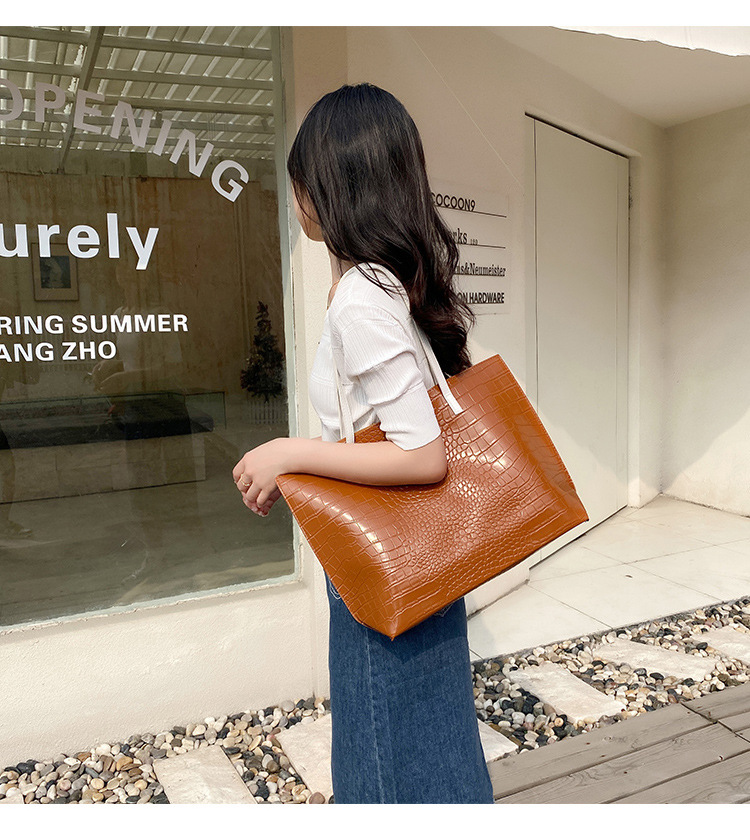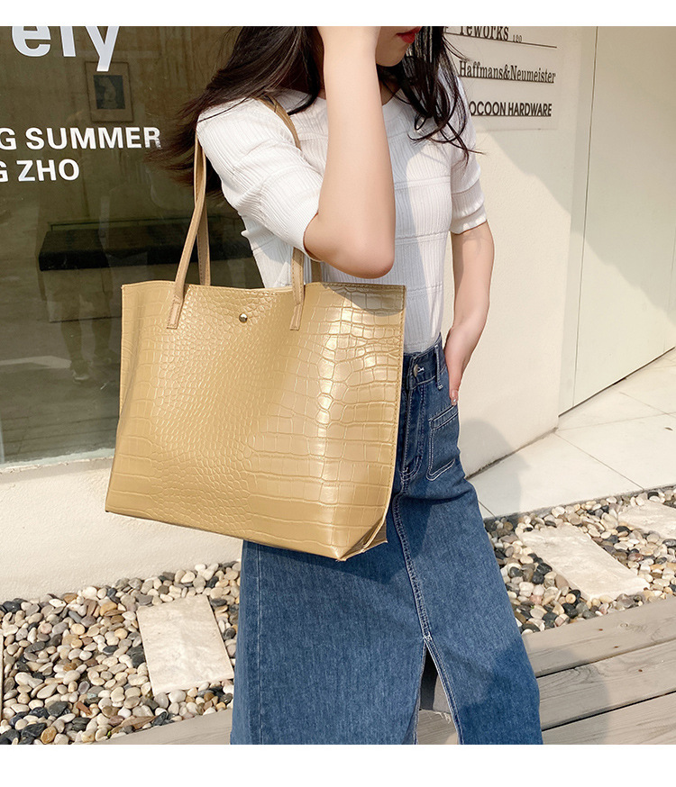 국경 여성 가방 2023 새로운 여성 가방 악어 패턴 대용량 솔리드 컬러 여성 토트 백 숄더 백스토어 가기