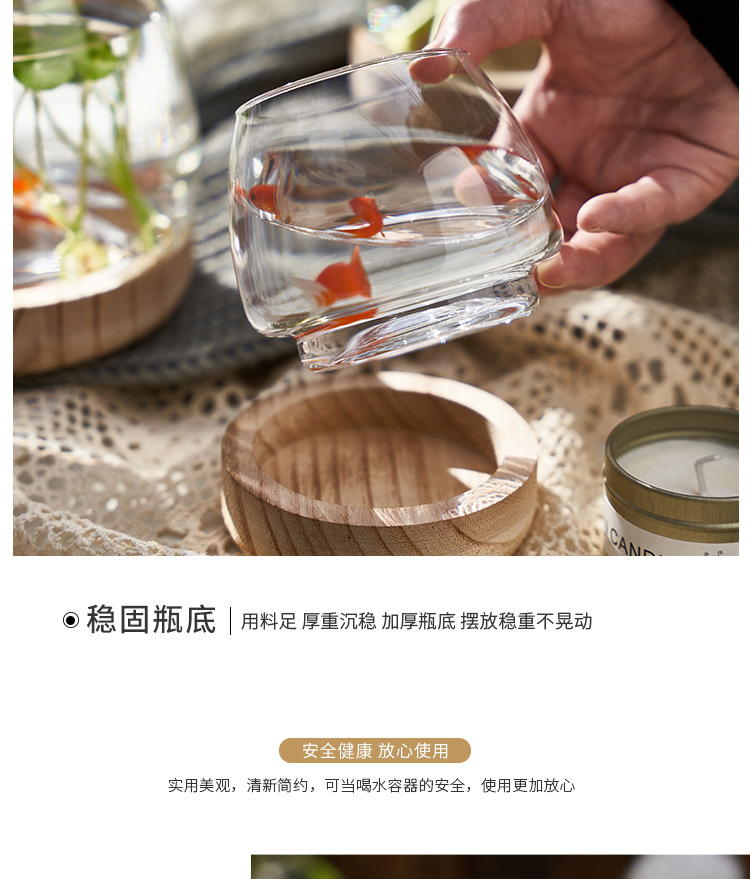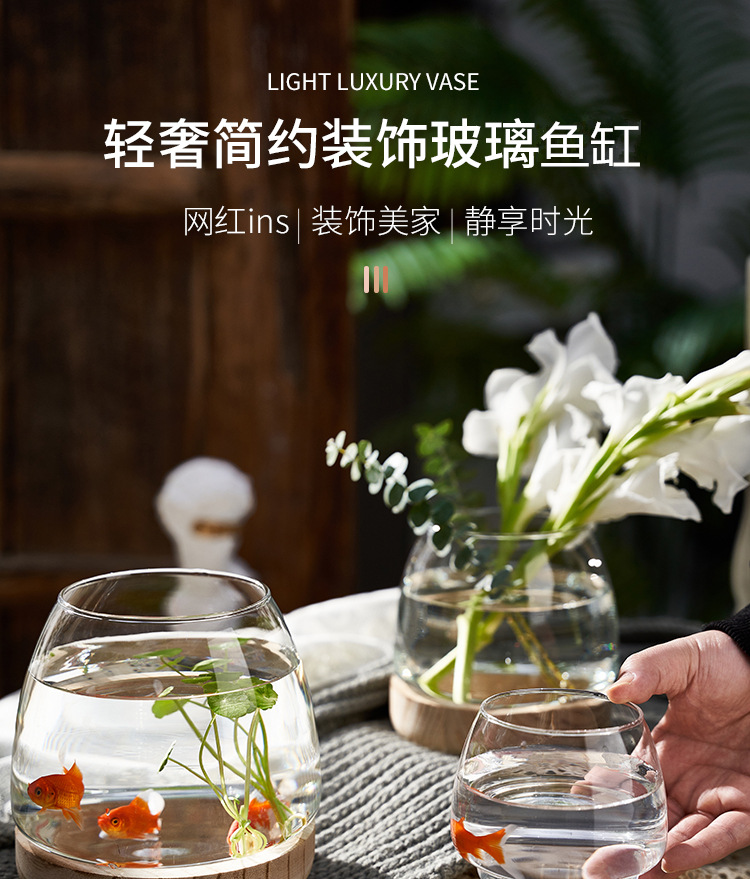창조적 인 간단한 유리 바람 물고기 탱크 조경 라운드 홈 파이팅 물고기 투명 작은 거실 수경 도매스토어 가기