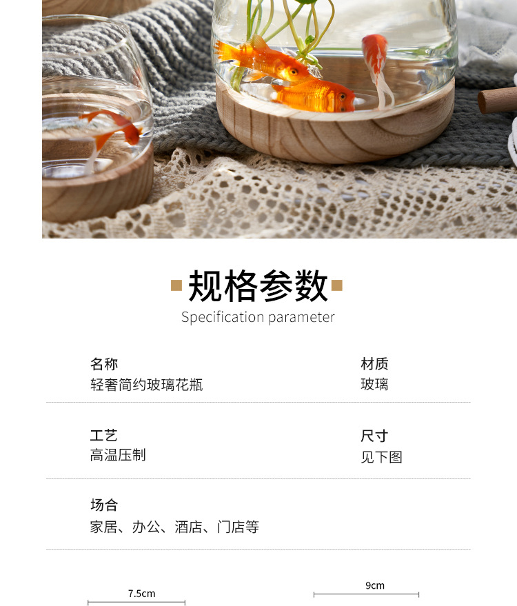 창조적 인 간단한 유리 바람 물고기 탱크 조경 라운드 홈 파이팅 물고기 투명 작은 거실 수경 도매