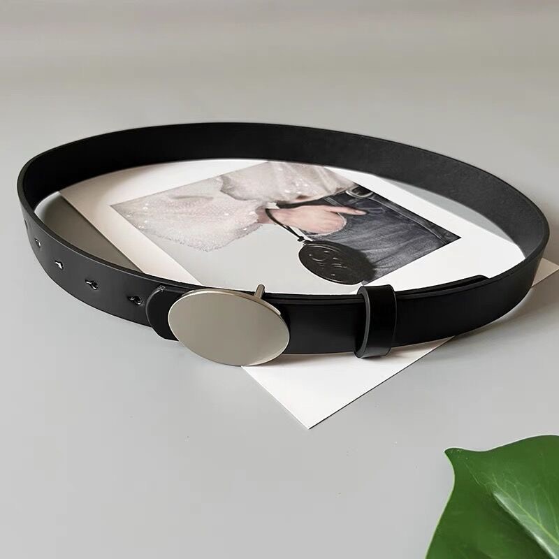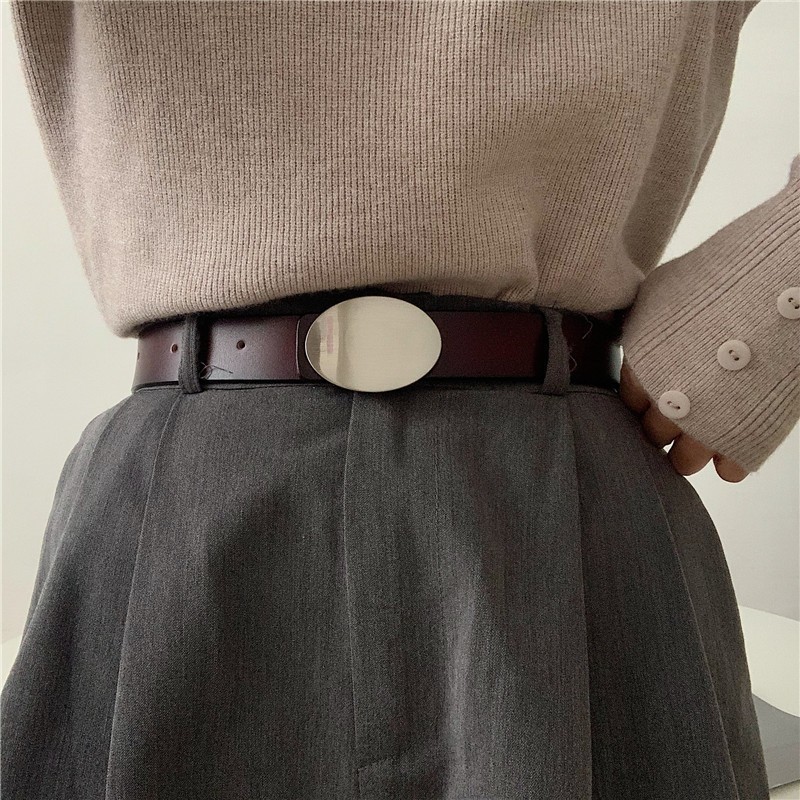 정품 가죽 고급 한국 벨트 여성의 여름 빈티지 여전히 간단한 모든 경기 타원형 버클 Instagram 인기있는 남성과 여성의 벨트스토어 가기