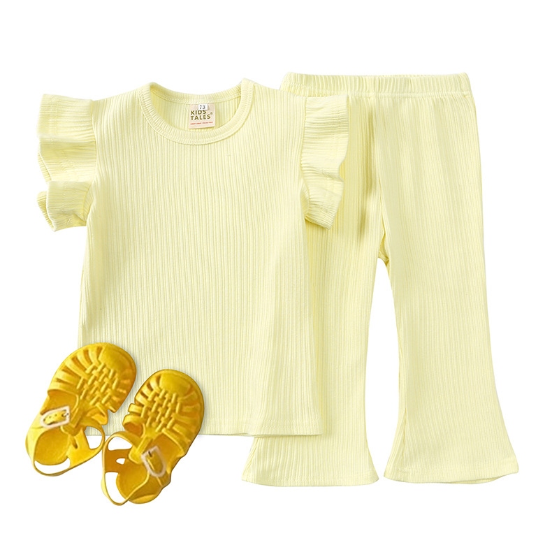 【产品名称】亚马逊ebay跨境童装2024夏季新款女童时尚飞袖上衣喇叭裤两件套