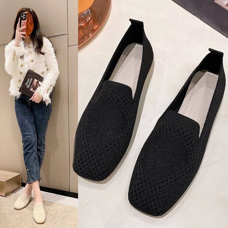 Doudou 메쉬 신발 스퀘어 토 새로운 패션 통기성 메쉬 표면 슬립온 플라이 짠 게으른 플랫 얕은 부드러운 바닥 여성용 레이디 슈즈스토어 가기