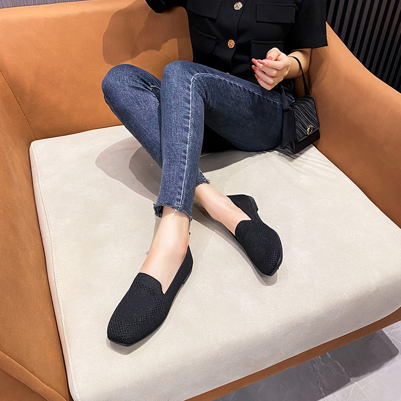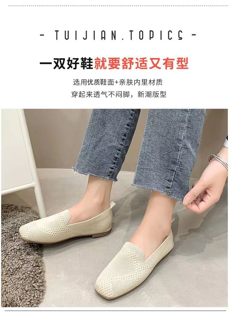 Doudou 메쉬 신발 스퀘어 토 새로운 패션 통기성 메쉬 표면 슬립온 플라이 짠 게으른 플랫 얕은 부드러운 바닥 여성용 레이디 슈즈