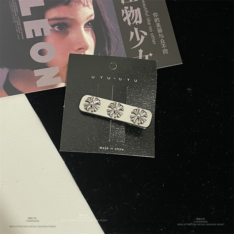 금속 클립 한국 앞머리 사이드 클립과 함께 블로거 빈티지 오래 된 다크 크로스 머리핀 여성