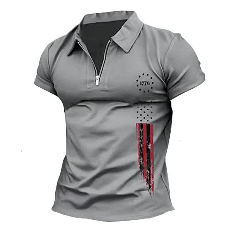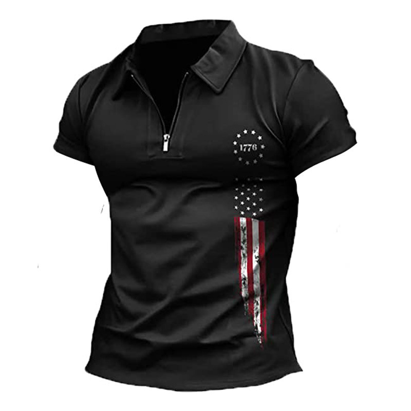 유럽과 미국의 대외 무역 남자 독립 기념일 1776 국기 인쇄 애국 폴로 셔츠 3d 디지털 인쇄 티셔츠스토어 가기