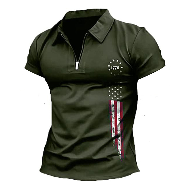 유럽과 미국의 대외 무역 남자 독립 기념일 1776 국기 인쇄 애국 폴로 셔츠 3d 디지털 인쇄 티셔츠