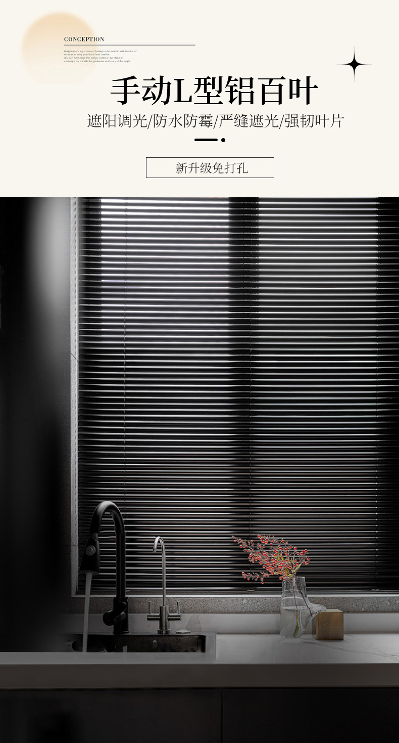 베네치아 블라인드 롤러 커튼 펀치 프리 화장실 화장실 가정용 사무실 욕실 주방 차양 리프팅 베네치아 블라인드스토어 가기
