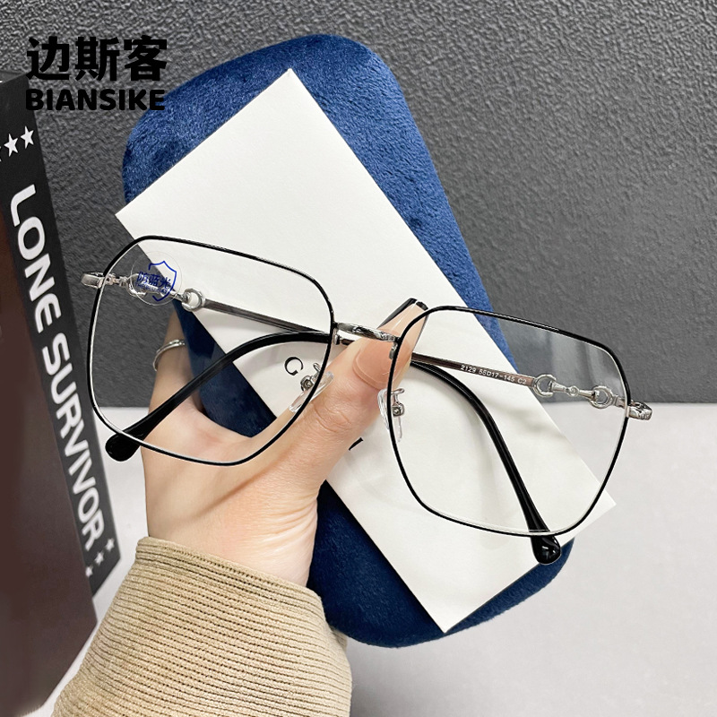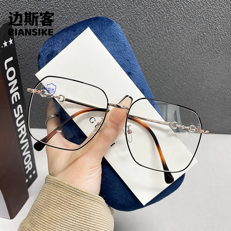 인터넷 연예인 스퀘어 메탈 프레임 안경 남성용 근시 안티 블루 라이트 미러가있는 눈을위한 여성용 큰 얼굴 슬리밍 일반 프레임 2129스토어 가기