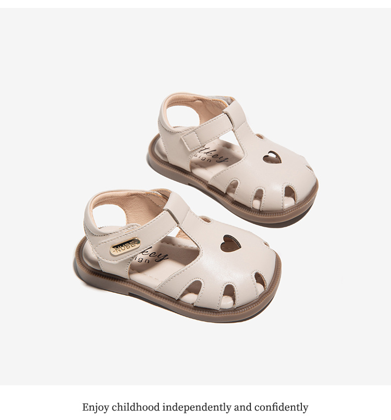 여아 바오터우 샌들, 패셔너블하고 복고풍 2025년 여름 신작 유아 및 어린이용 부드러운 밑창 영국식 해변 신발