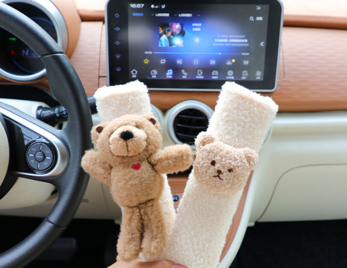 곰 카시트 벨트 어깨 패드 플러시 만화 귀여운 자동차 안전 벨트 끈 방지 보호 커버 자동차 액세서리스토어 가기