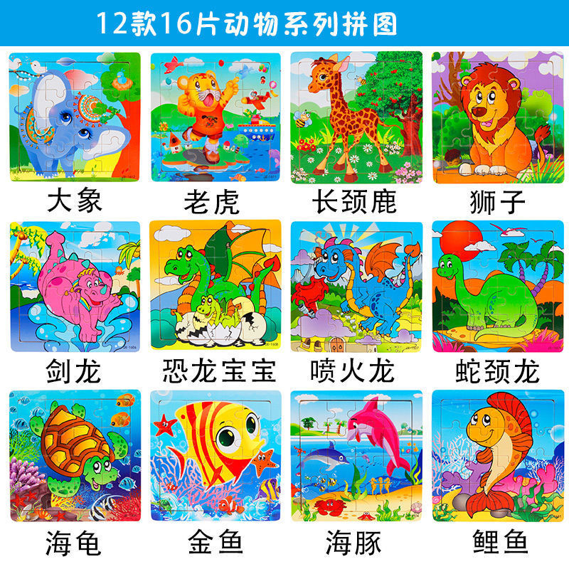 • 16 동물 공룡 퍼즐-12 팩