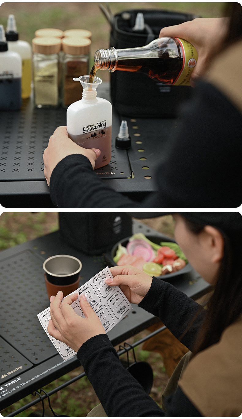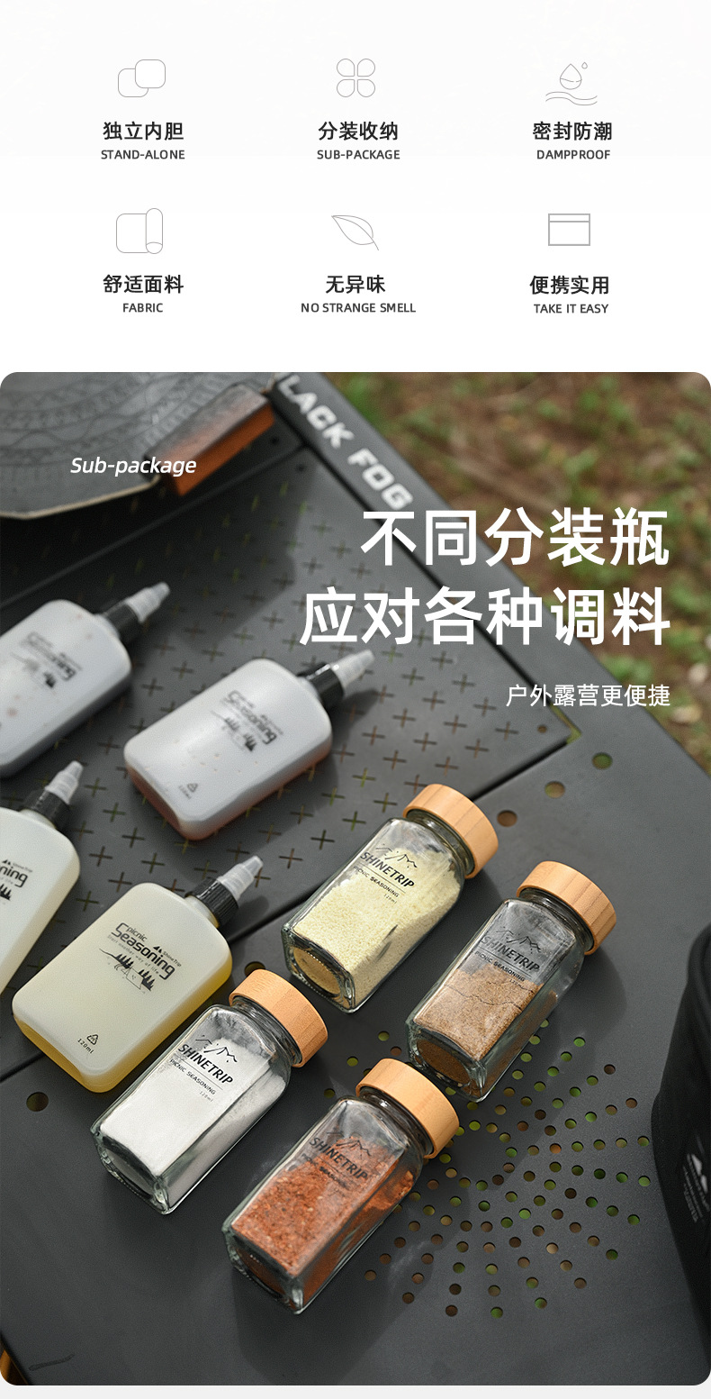 Shanqu 야외 캠핑 조미료 병 세트 피크닉 조미료 상자 기름 냄비 분리 냄비 대나무 나무 뚜껑 밀봉 조미료 냄비스토어 가기