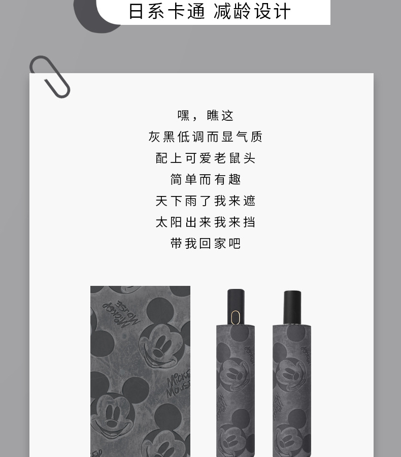 미키 우산 여성용 완전 자동 맑고 비 이중 목적 접이식 자외선 차단제 블랙 고무 만화 차양 우산 UV 보호 태양 우산스토어 가기