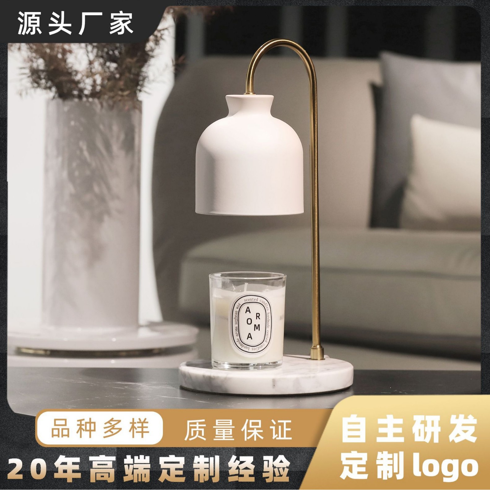 아로마테라피 왁스 램프, 금속 대리석 캔들 램프, 향기 테이블 램프, 발광 아크릴 야간 조명