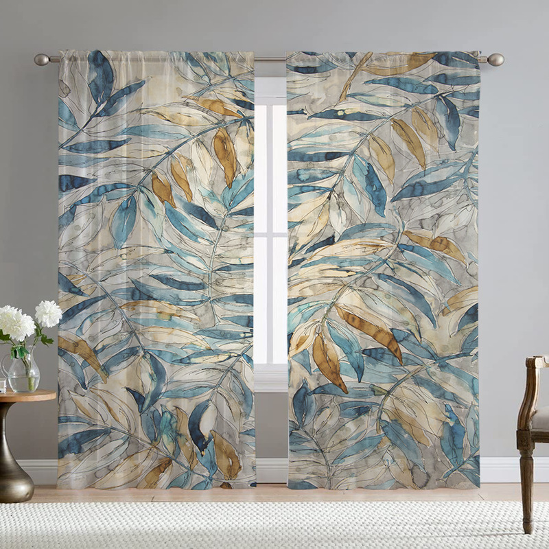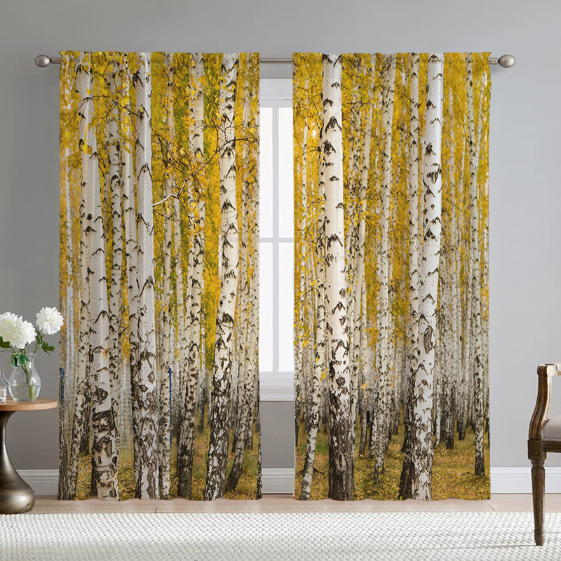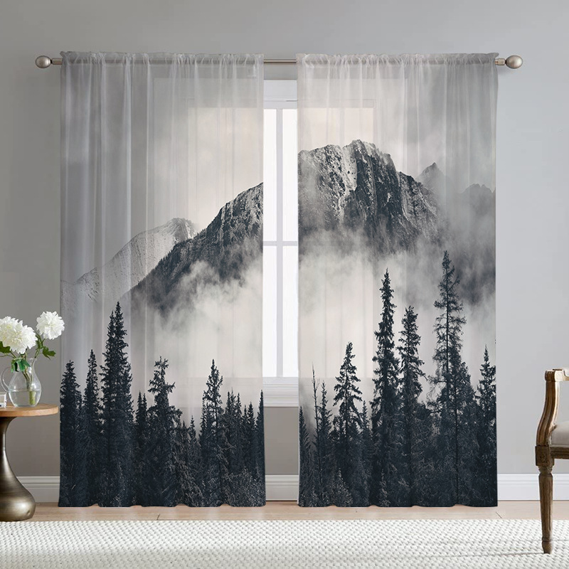 국경 간 전자 상거래 풍경 창 화면 디지털 인쇄 숲 녹색 식물 거즈 커튼 투명 관성 미적 베이 창 거즈 커튼