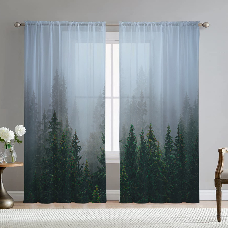 국경 간 전자 상거래 풍경 창 화면 디지털 인쇄 숲 녹색 식물 거즈 커튼 투명 관성 미적 베이 창 거즈 커튼스토어 가기