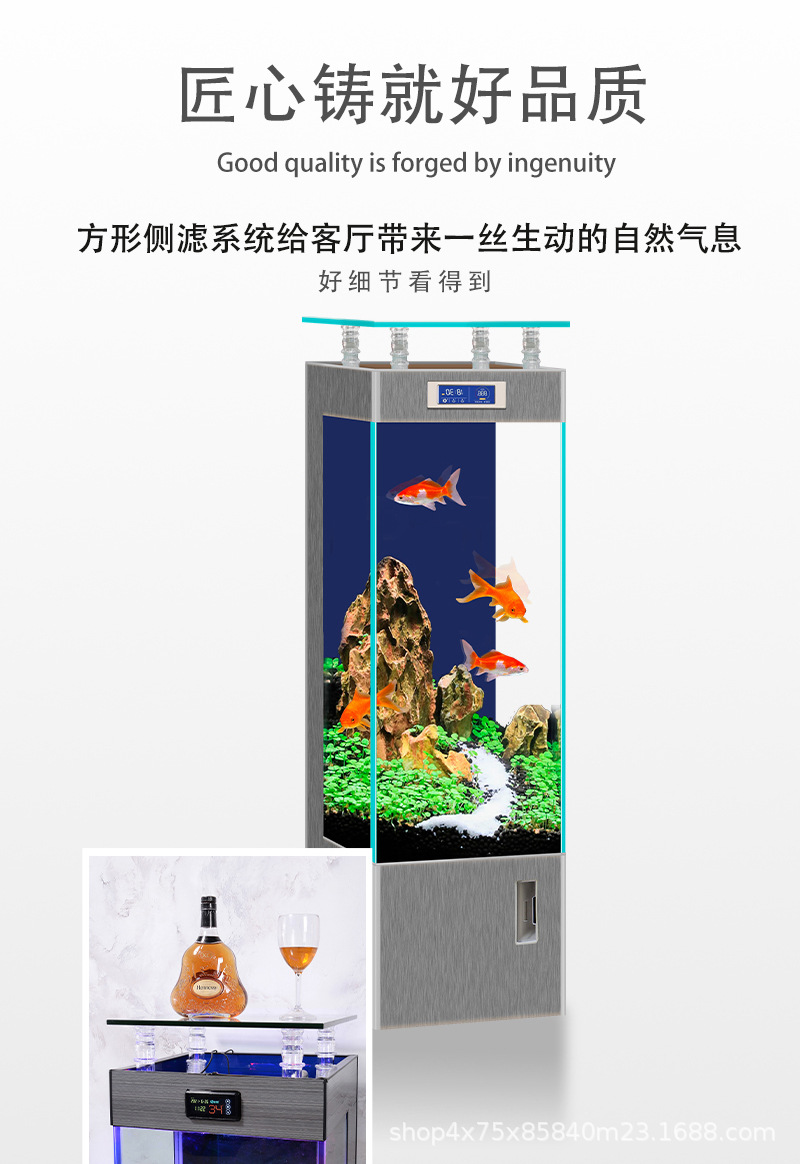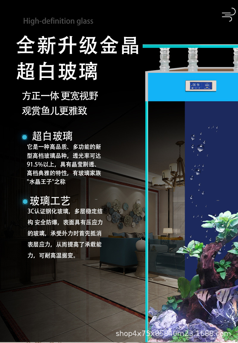 2025 어항 골드 크리스탈 초백유리 벽걸이형 후면 여과 연중 물갈이 필요 없음 원터치 배수 스마트 수족관스토어 가기