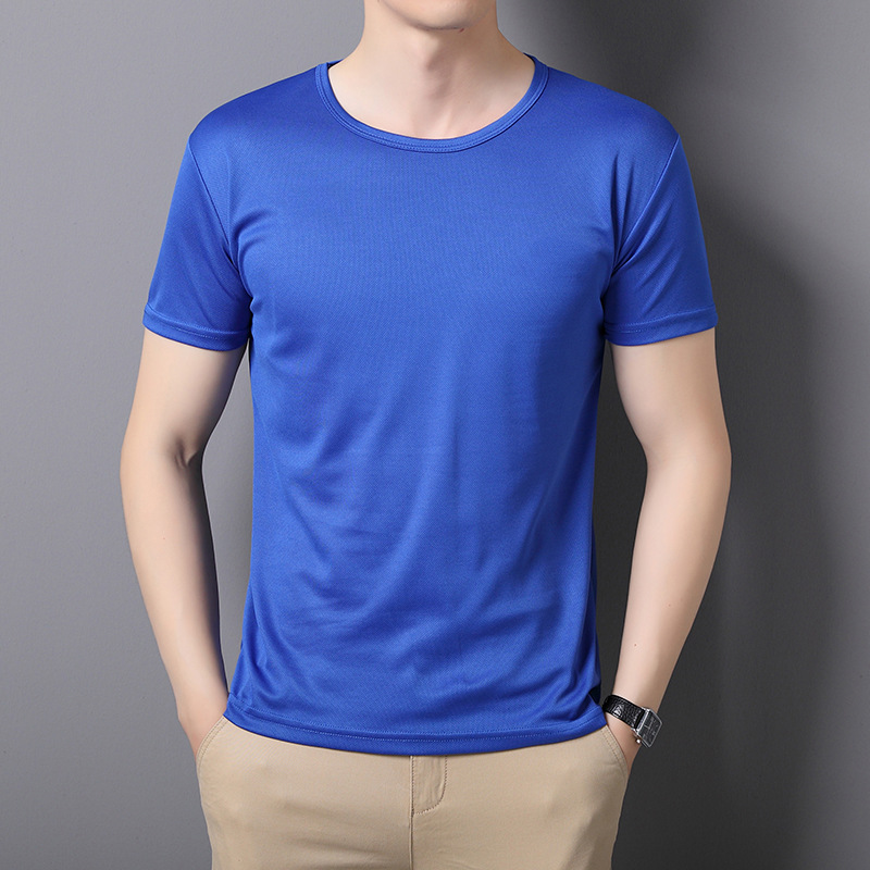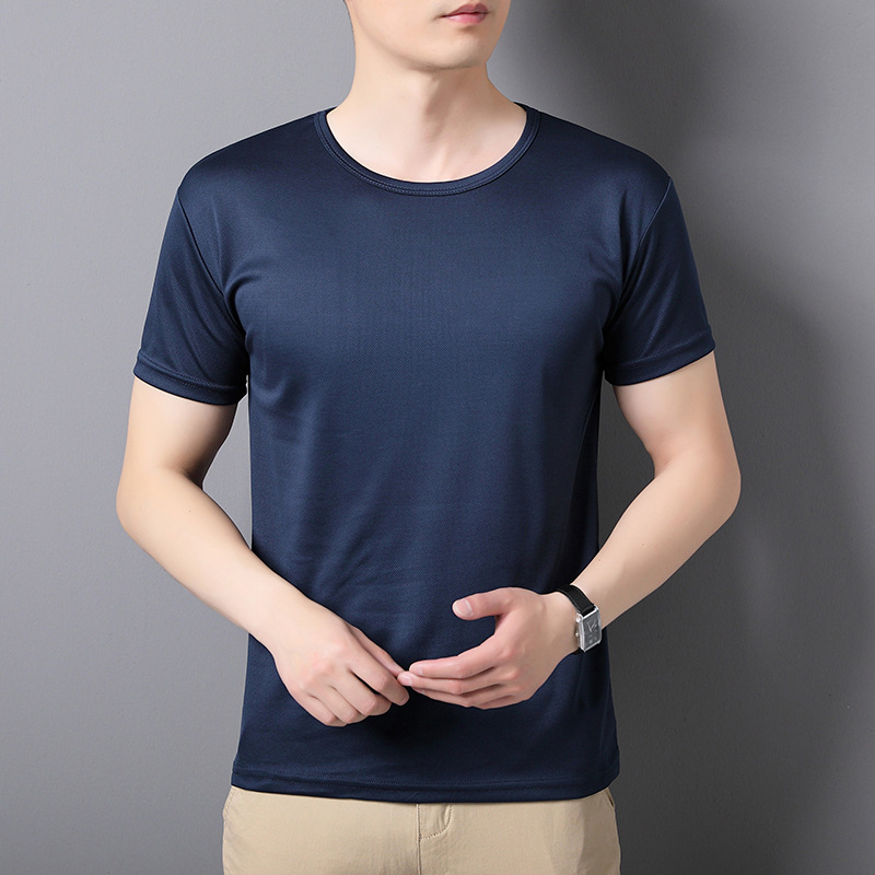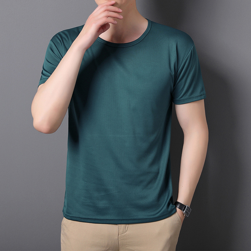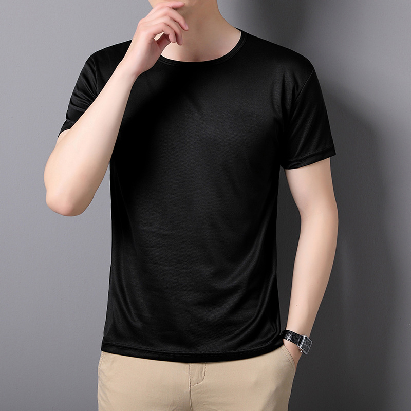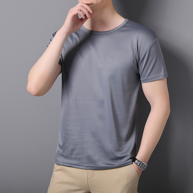 티셔츠 남성 패션 여름 2024 새로운 라이트 플레이트 아이스 실크 속건성 반팔 스트레치 메쉬 라운드 넥 얇은 섹션스토어 가기