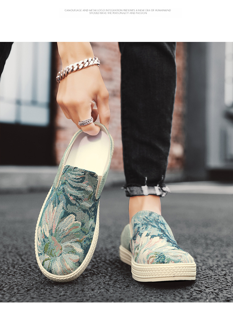 2023 새로운 패션 남성용 데일리 트렌디 게으른 신발 천 국수 통기성 전국 트렌디 슬립온 남성 신발