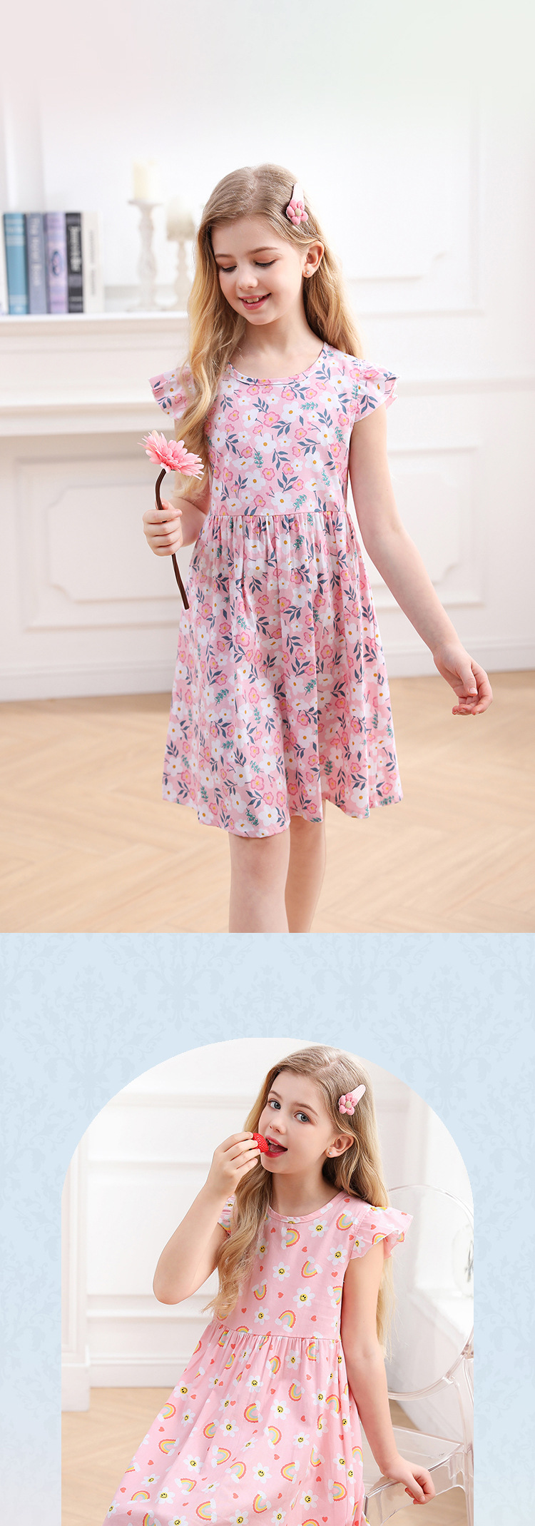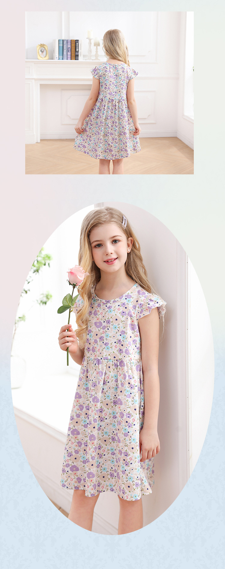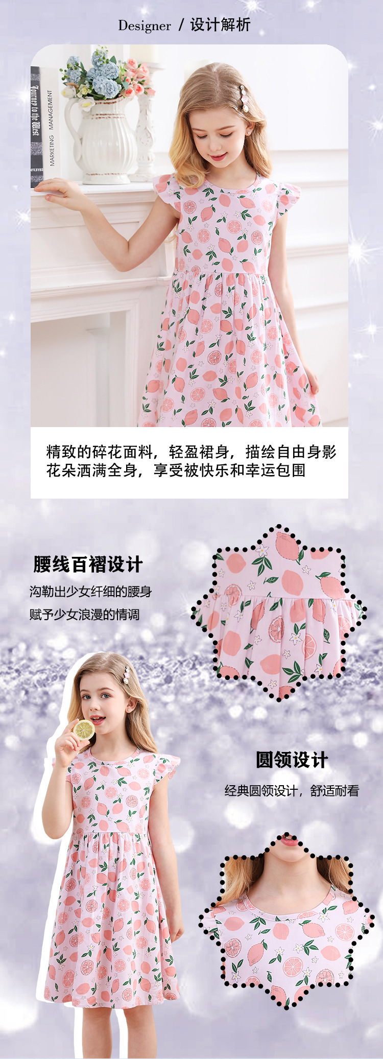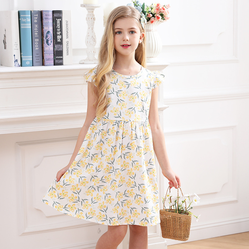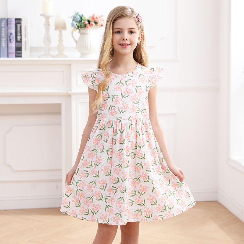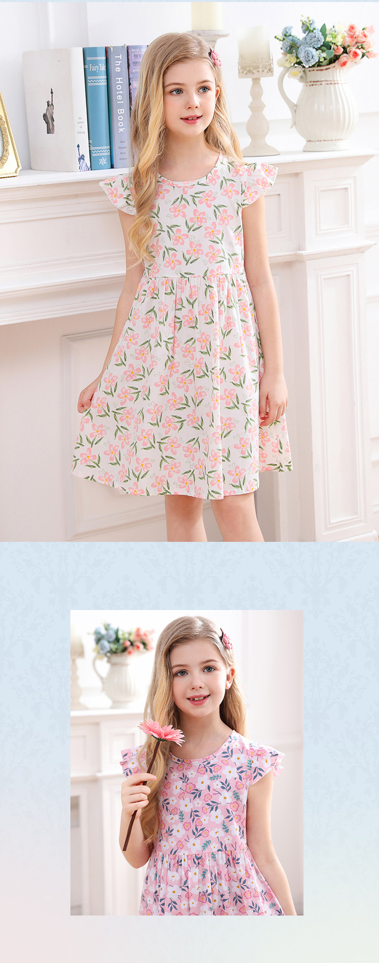 어린이 원피스 순면 여성과 소녀 여름 얇은 2023 새로운 도매 깨진 꽃 조수 착용 반팔 공주 치마