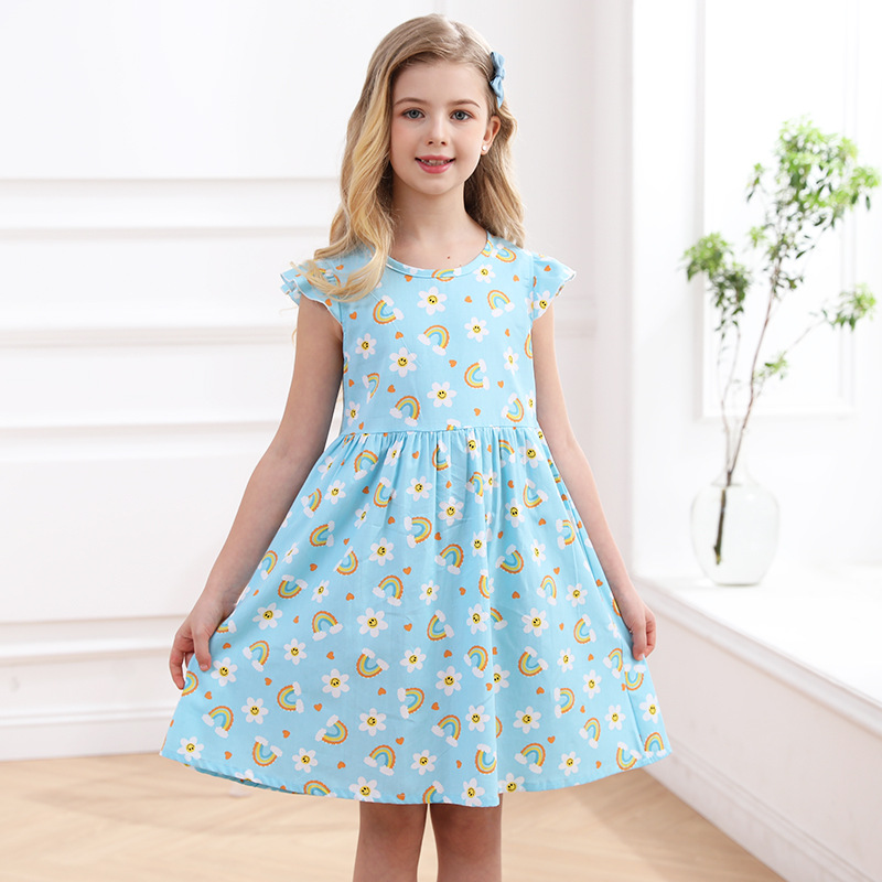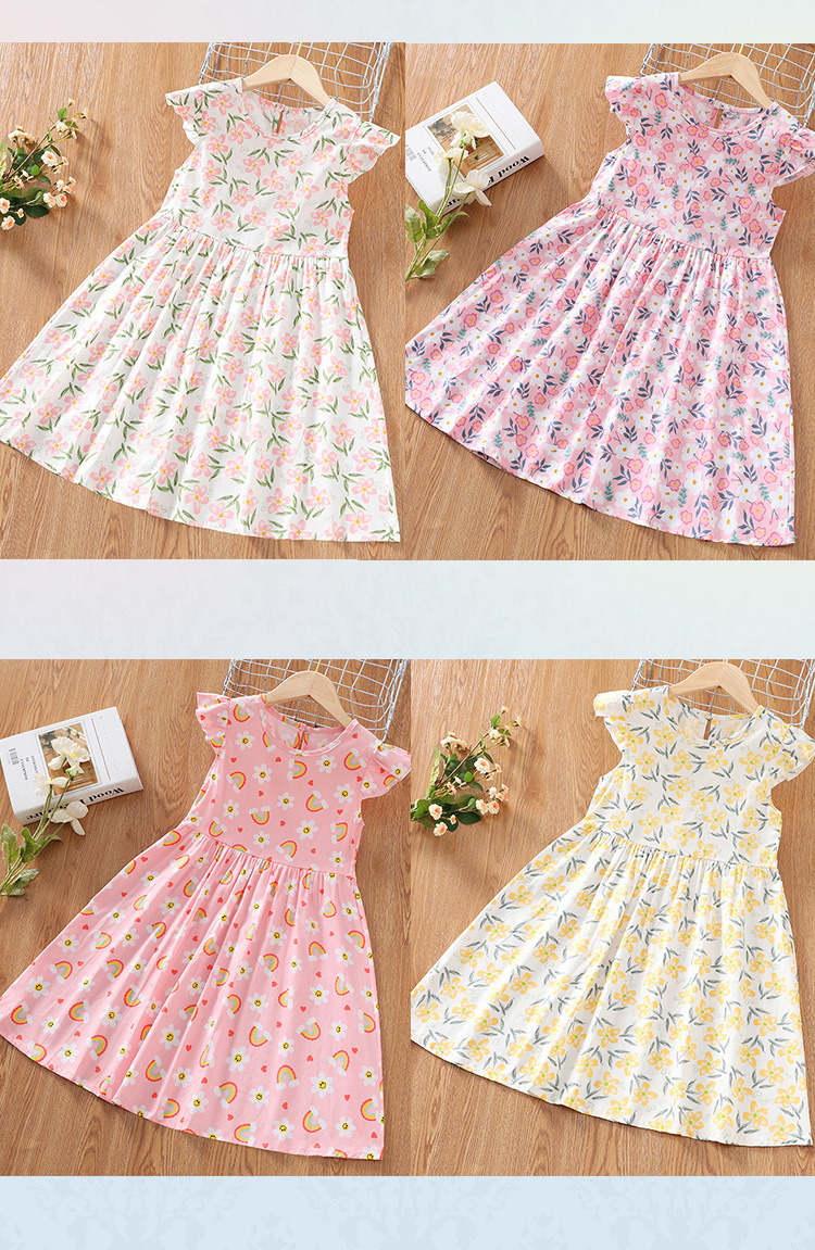 어린이 원피스 순면 여성과 소녀 여름 얇은 2023 새로운 도매 깨진 꽃 조수 착용 반팔 공주 치마스토어 가기