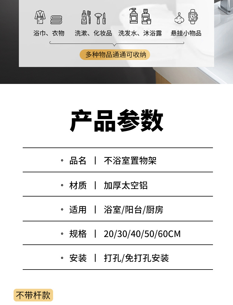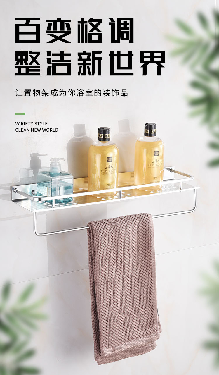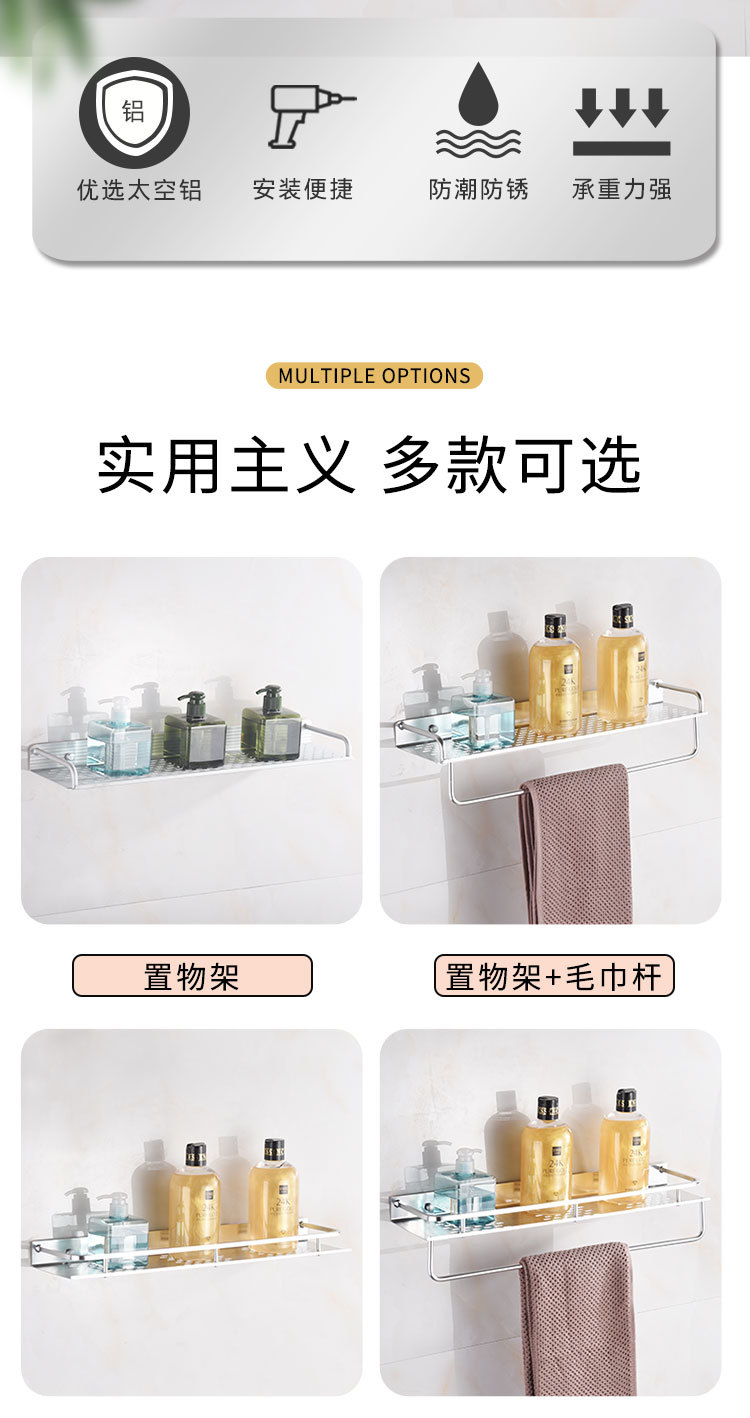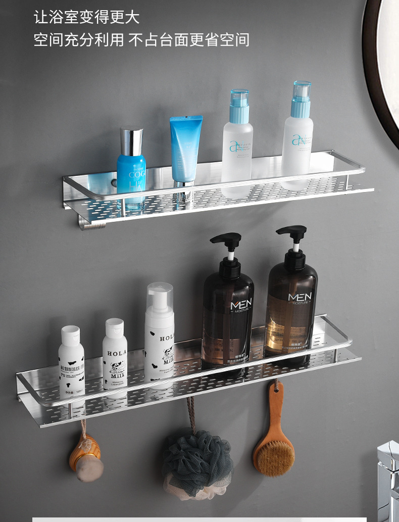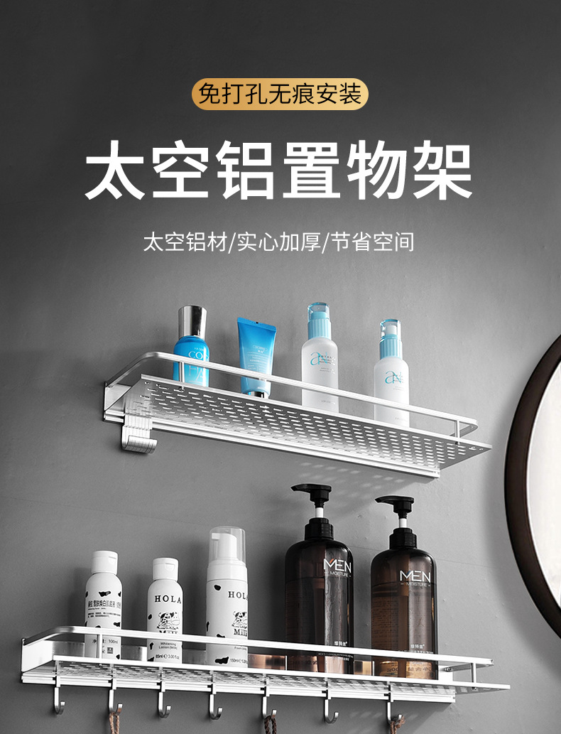 공간 알루미늄 주방 수납 랙 벽걸이 형 단층 조미료 보관 랙 펀치 프리 욕실 화장실 수납 랙스토어 가기