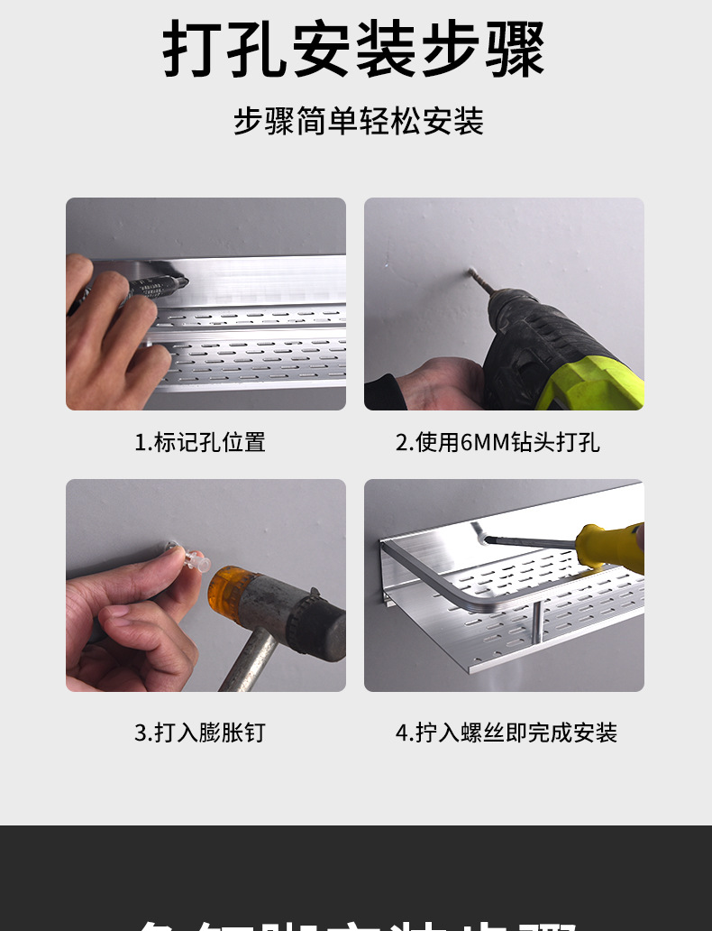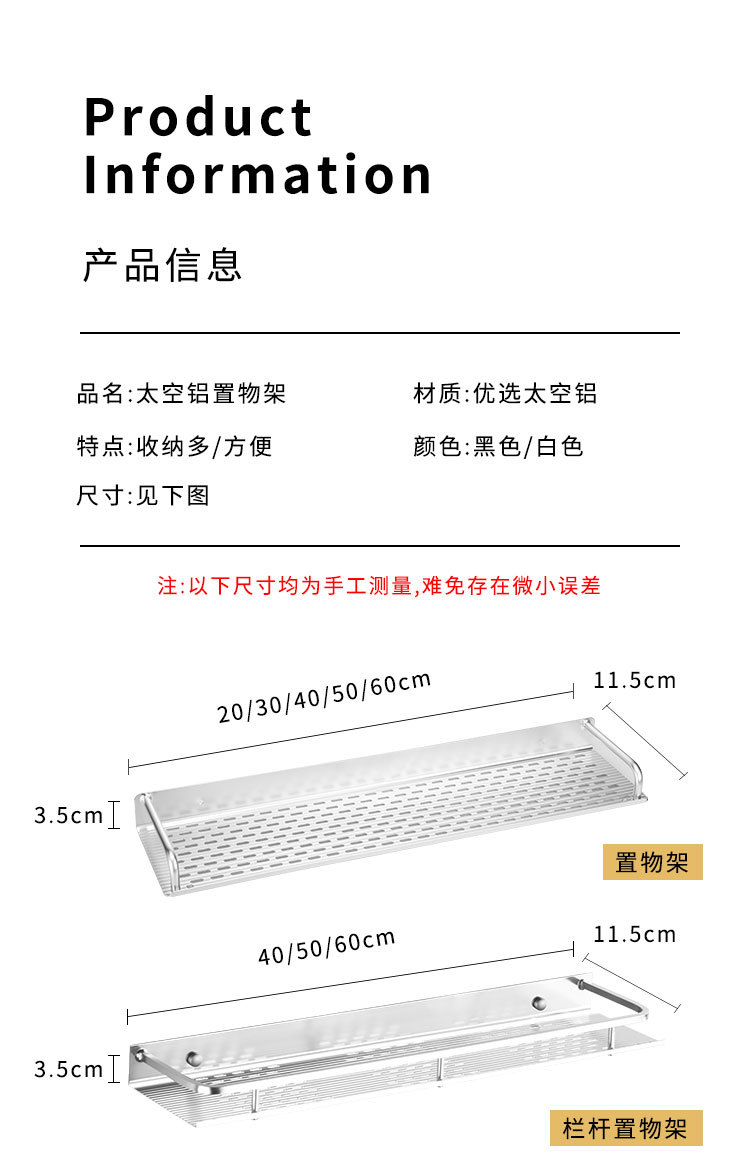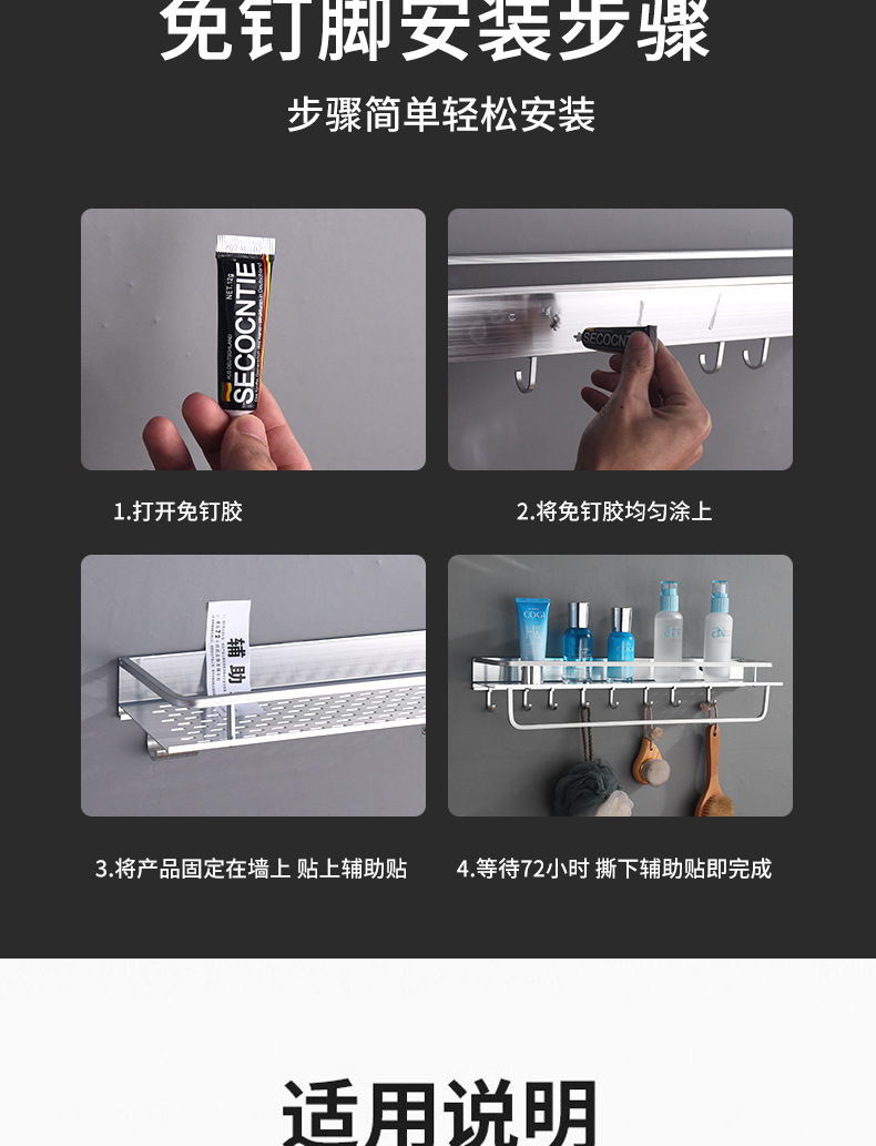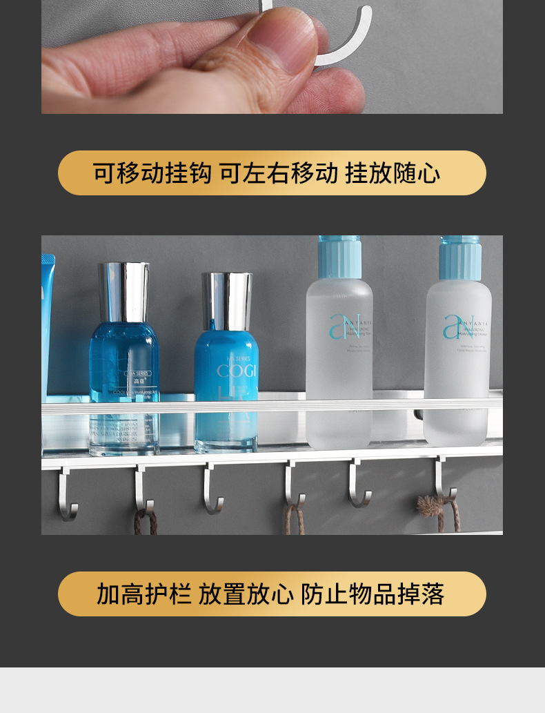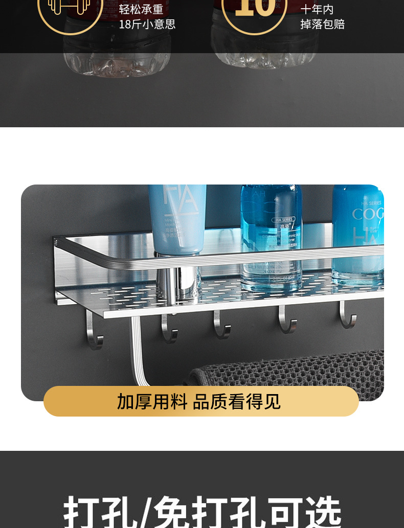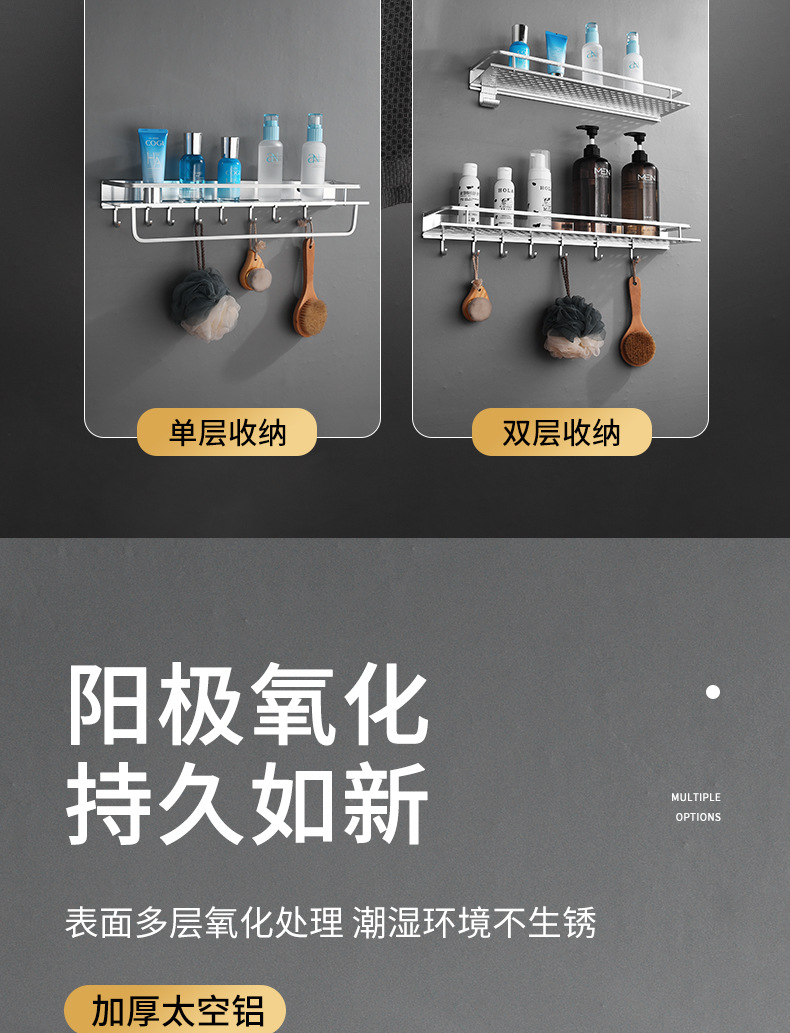 공간 알루미늄 주방 수납 랙 벽걸이 형 단층 조미료 보관 랙 펀치 프리 욕실 화장실 수납 랙스토어 가기