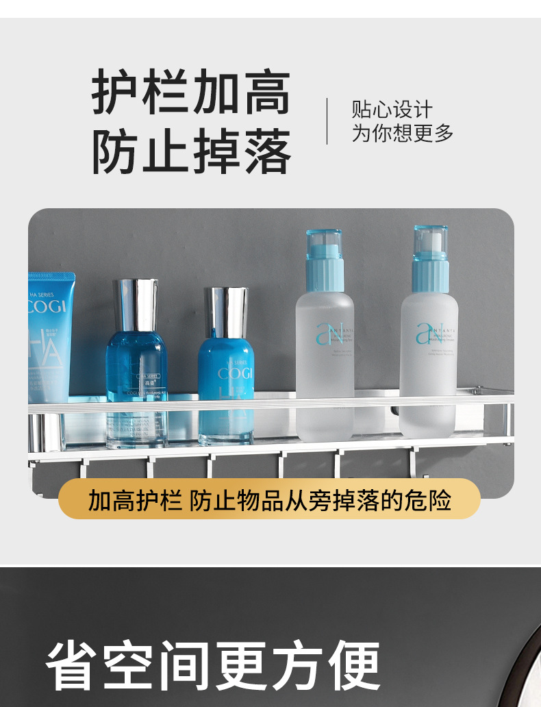 공간 알루미늄 주방 수납 랙 벽걸이 형 단층 조미료 보관 랙 펀치 프리 욕실 화장실 수납 랙