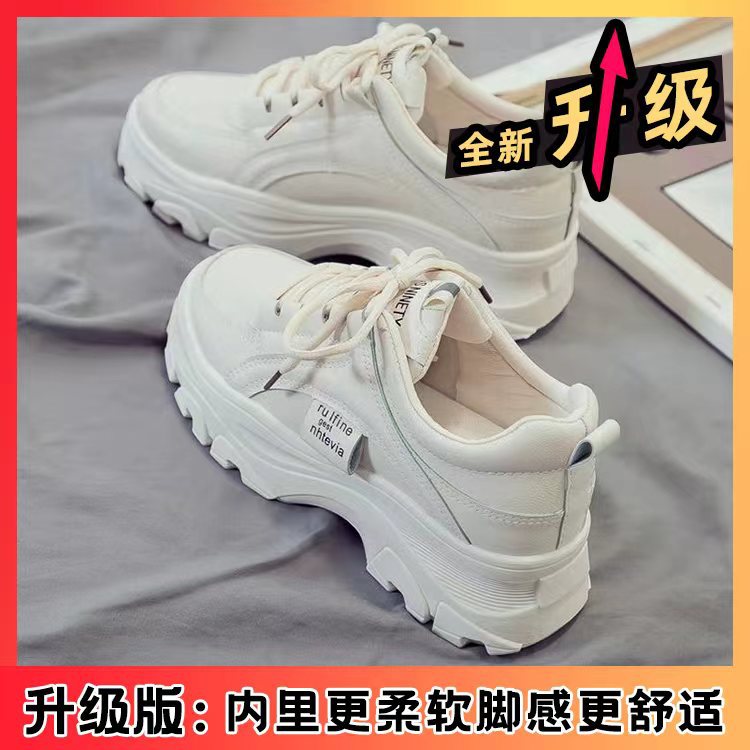 여성용 대외 무역 아빠 신발 2025 봄, 가을 플랫폼 두꺼운 밑창 키높이 캐주얼 여성 신발 패셔너블한 단색 스포츠 화이트 슈즈스토어 가기