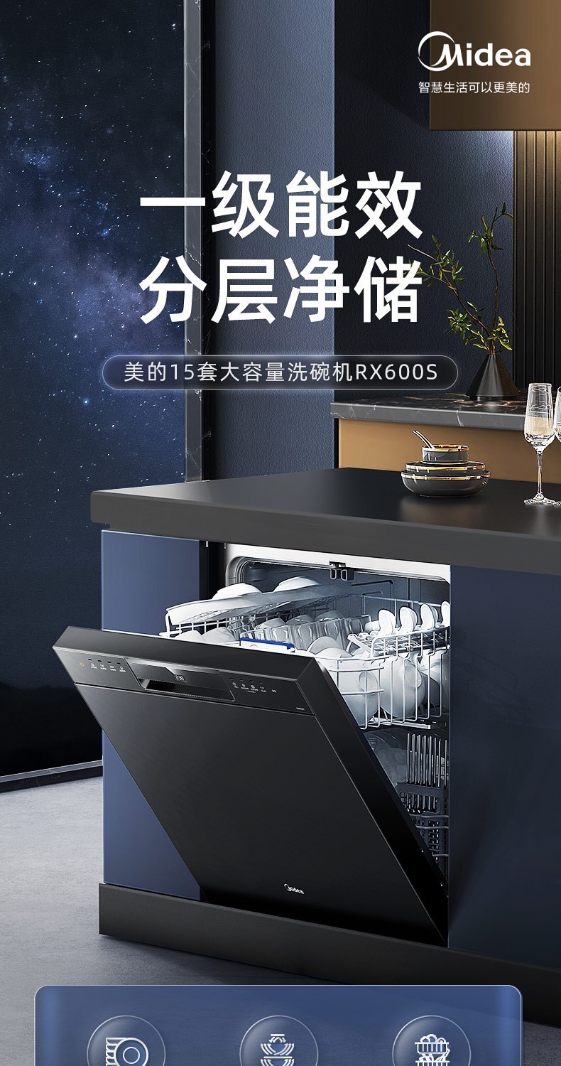 Midea/Midea RX600S 식기 세척기 완전 자동 가정용 임베디드 데스크탑 식기 세척기 소독 15 세트스토어 가기