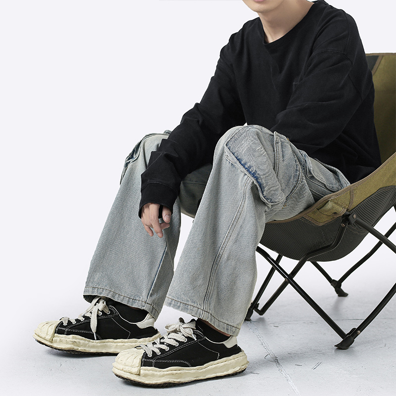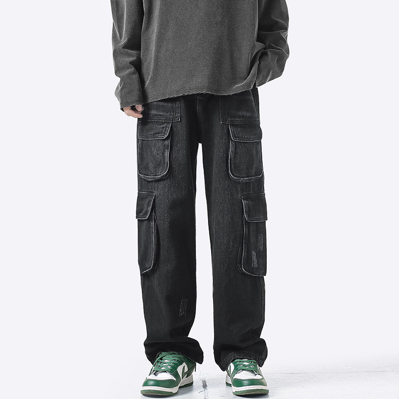 Crock Jeans 남성용 트렌디 브랜드 인 플로어 팬츠 하이 스트리트 트렌디 멀티 포켓 스트레이트 팬츠 루즈한 토레 팬츠스토어 가기