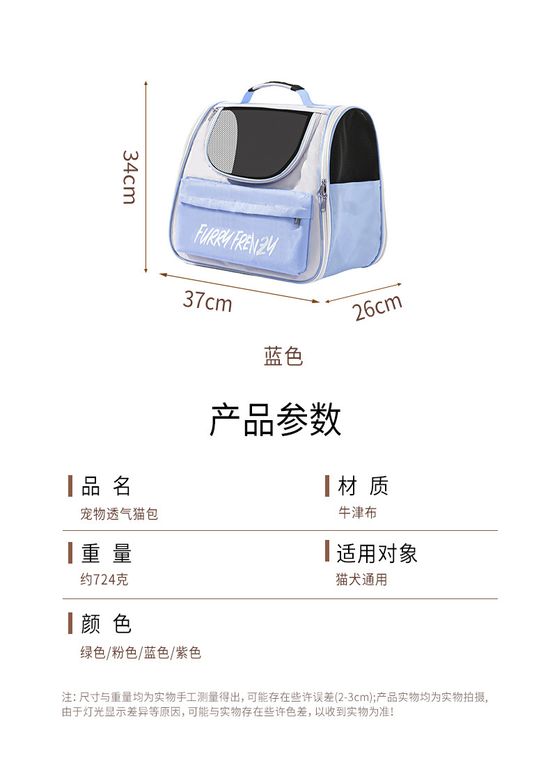 양쪽 어깨에 메는 고양이 가방, 외출용 휴대 고양이 배낭, 옥스포드 천 애완동물 외출 가방, 대용량 고양이 책가방, 우주 캡슐스토어 가기