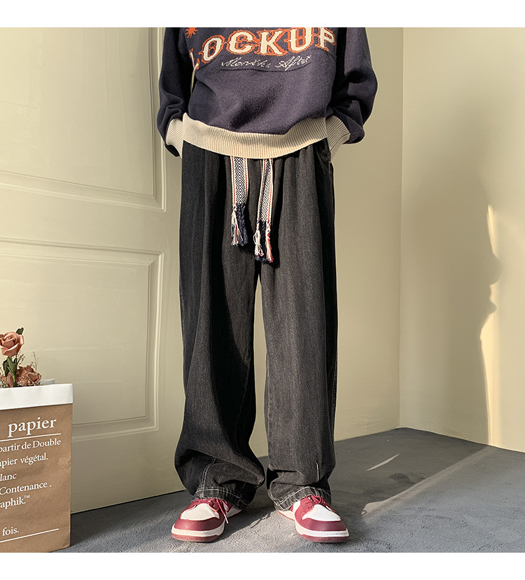 아메리칸 스타일 사용 하이 엔드 청바지 남자의 가을과 겨울 유행 느슨한 플러스 사이즈 와이드 스트레이트 다리 캐주얼 바지스토어 가기