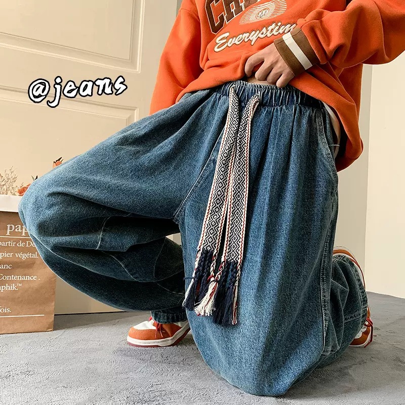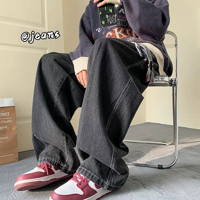 美式做旧高端牛仔裤男秋冬款潮牌ins宽松大码阔直筒阔腿休闲长裤