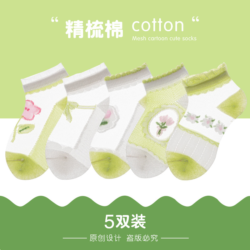 소녀 면 양말 봄과 여름 얇은 어린이 양말 소녀 아기 양말 레이스 녹색 꽃 통기성 메쉬 양말스토어 가기