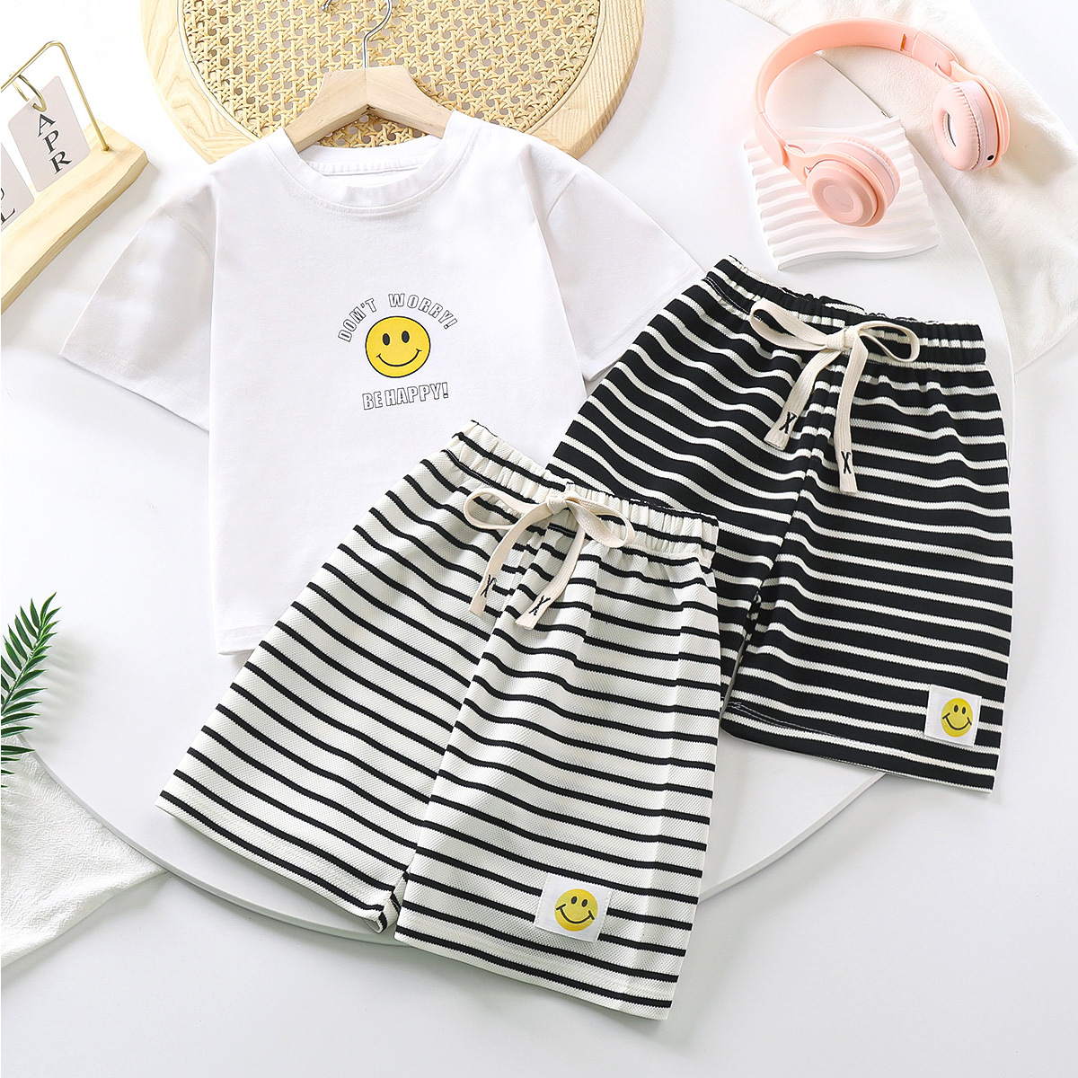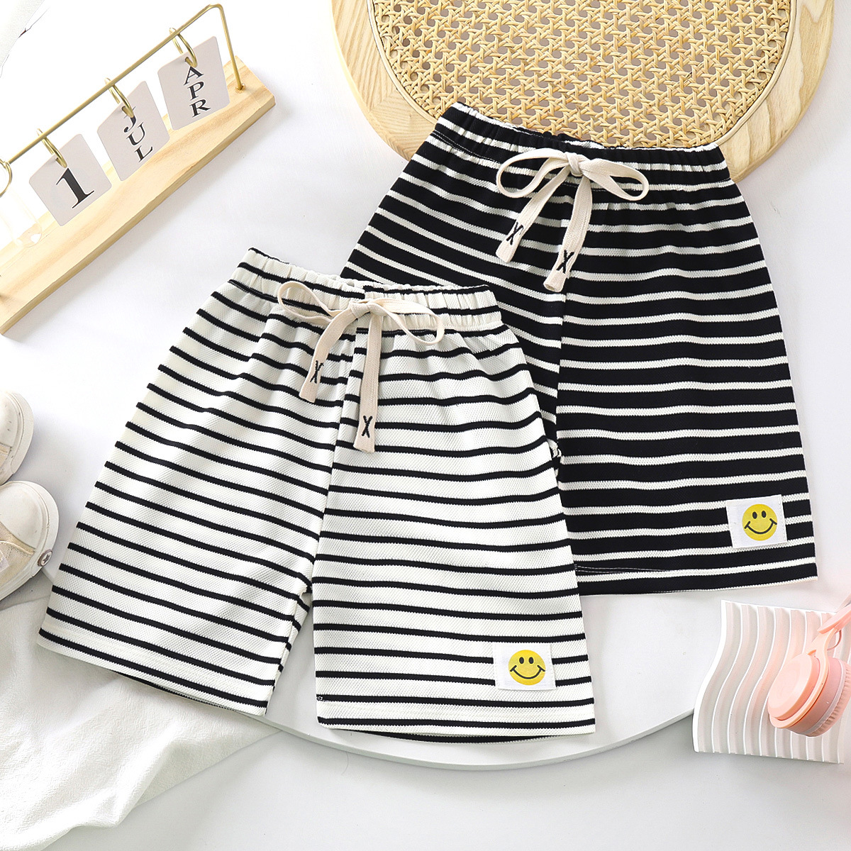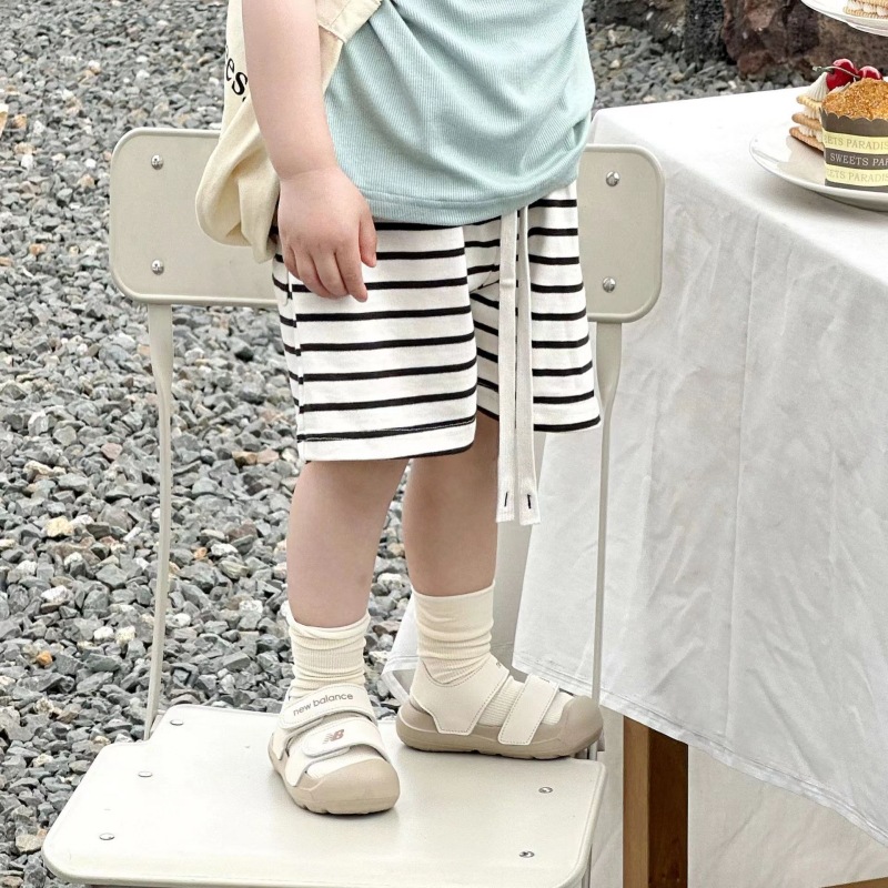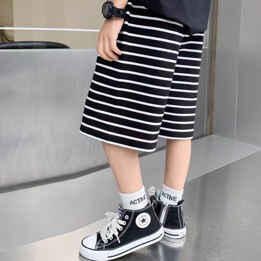 새로운 여름 어린이 반바지 소년과 소녀를위한 대형 어린이 통기성 얇은 줄무늬 5 점 바지 아기 캐주얼 패션 바지