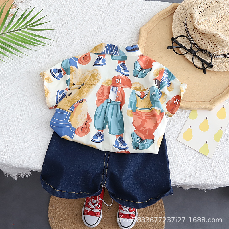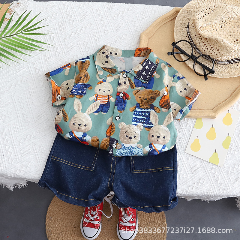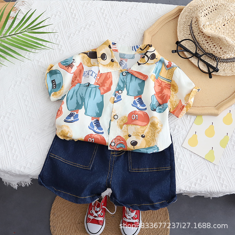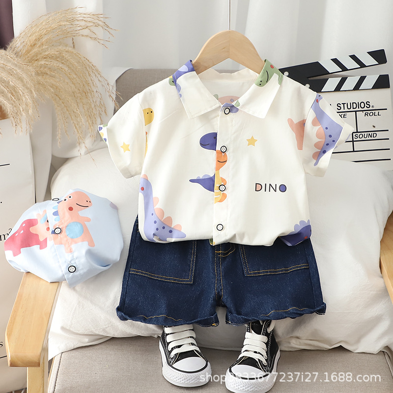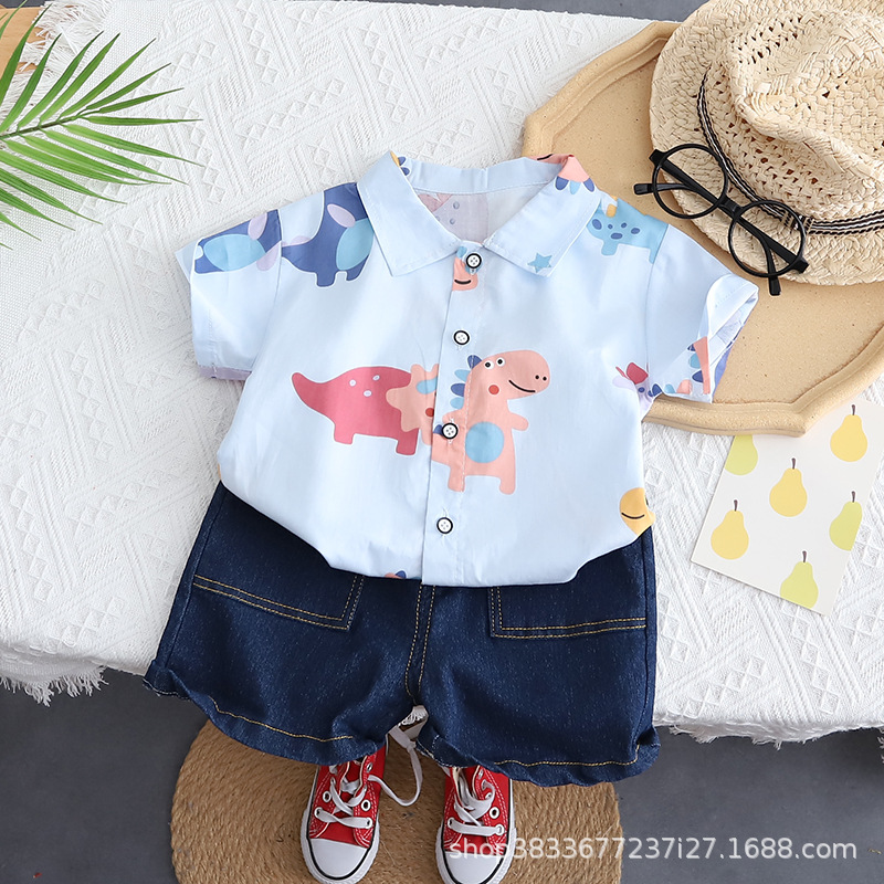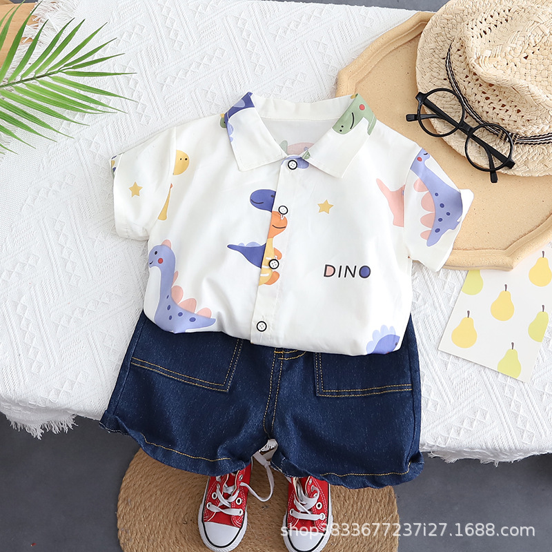 소년 자동차 공룡 세트 새로운 여름 착용 남자의 보물 여름 아동복 어린이 잘 생긴 유행 투피스 폴로 셔츠스토어 가기