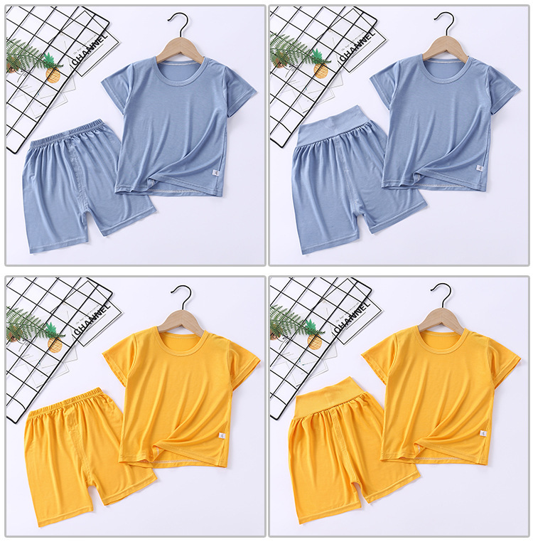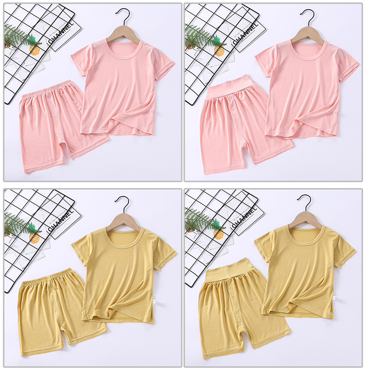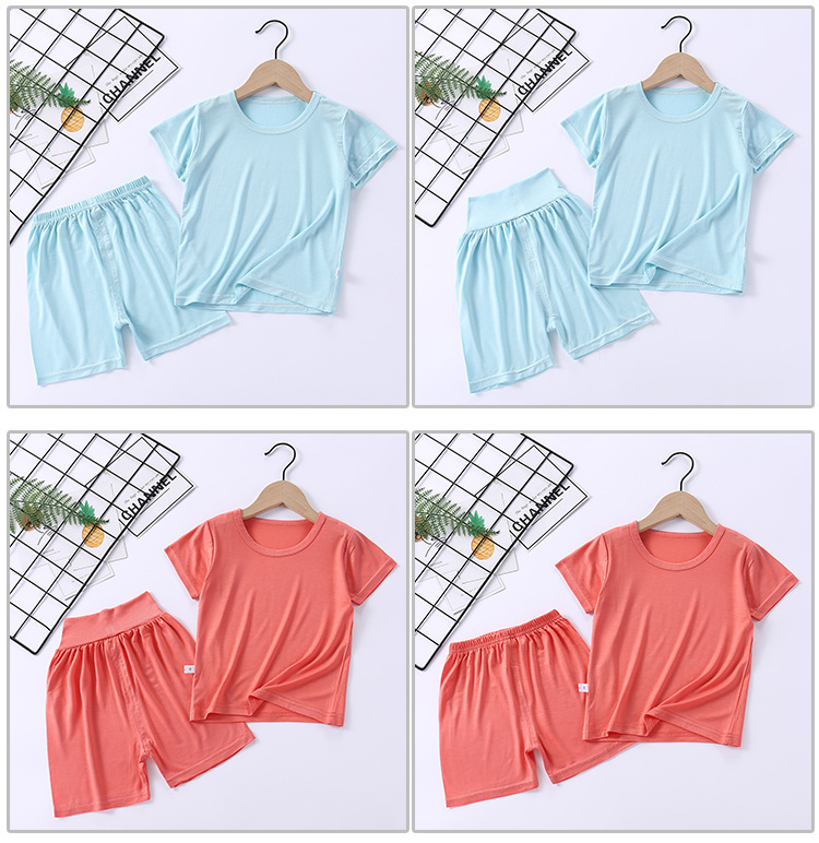 여름 아동 의류 티셔츠 소년 소녀 반팔 반바지 정장 아동 잠옷 하이 웨이스트 모달 잠옷 Homewear