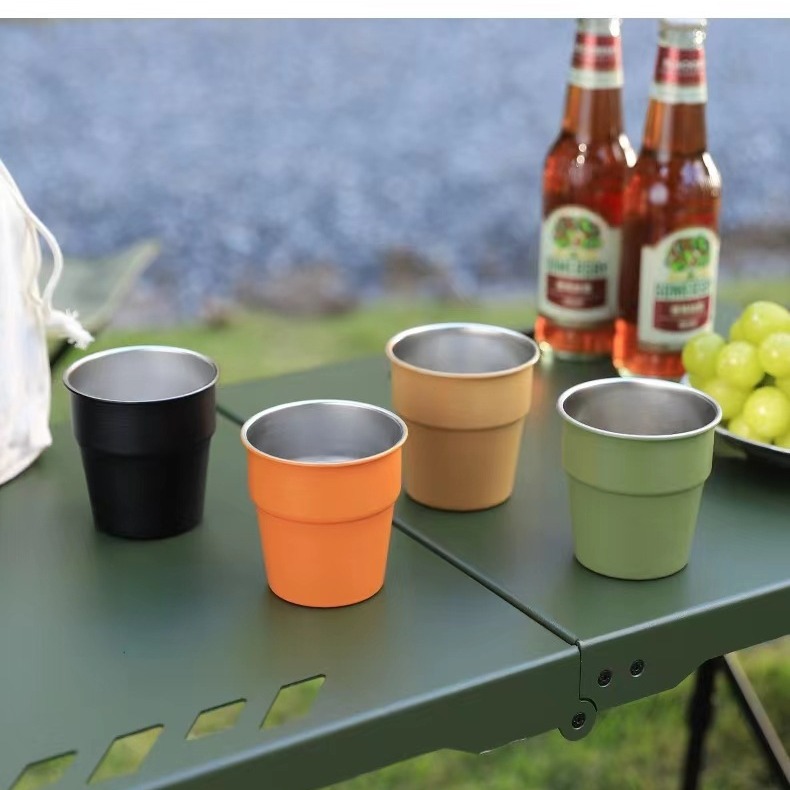 크로스보더 304 스테인리스 컵 물 컵 캠핑 맥주 컵 커피 컵 휴대용 차가운 음료 컵 야외 쌓을 수 있는 컵스토어 가기